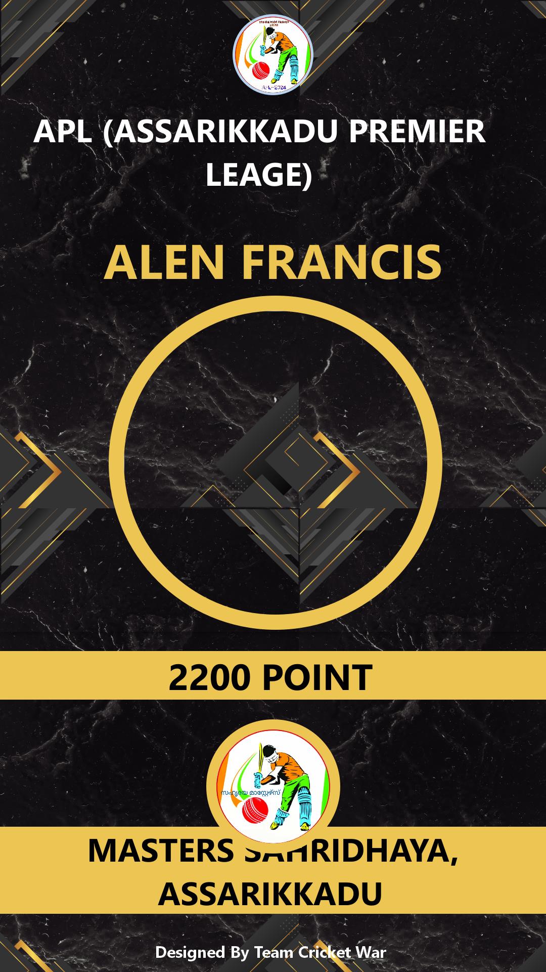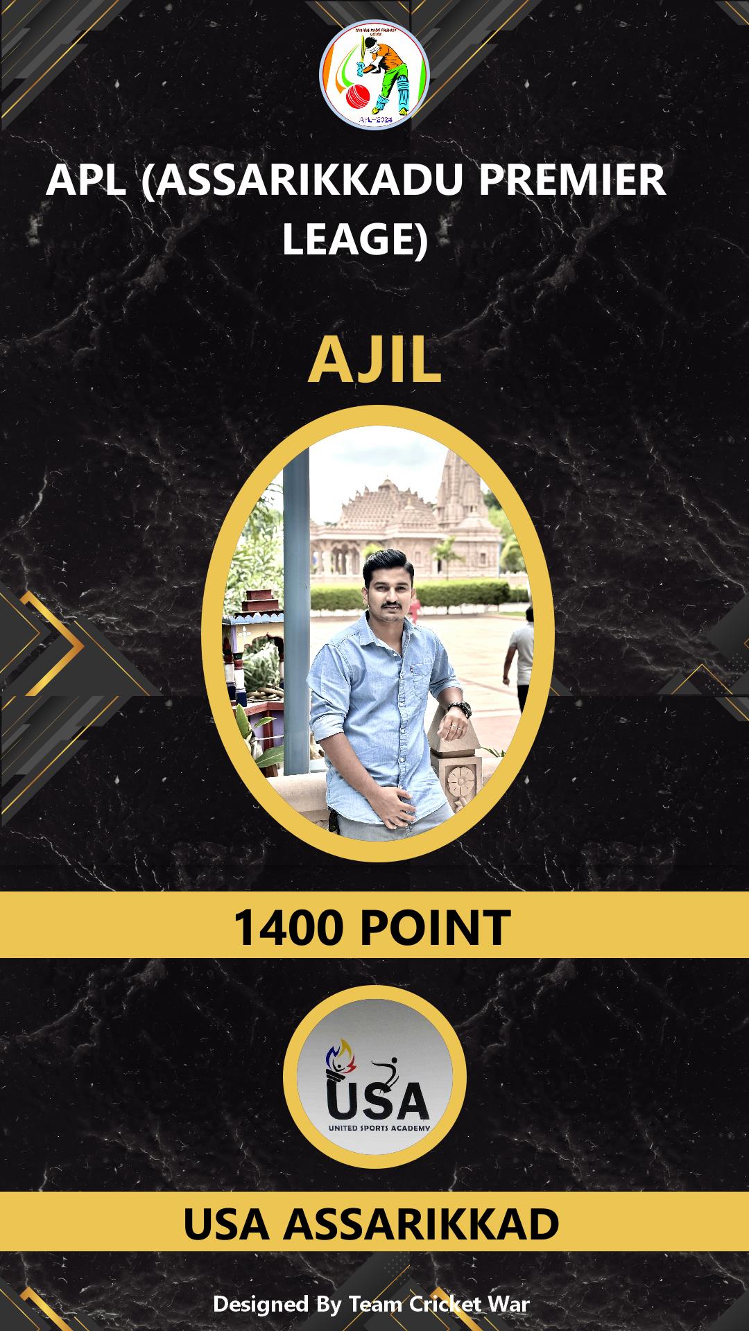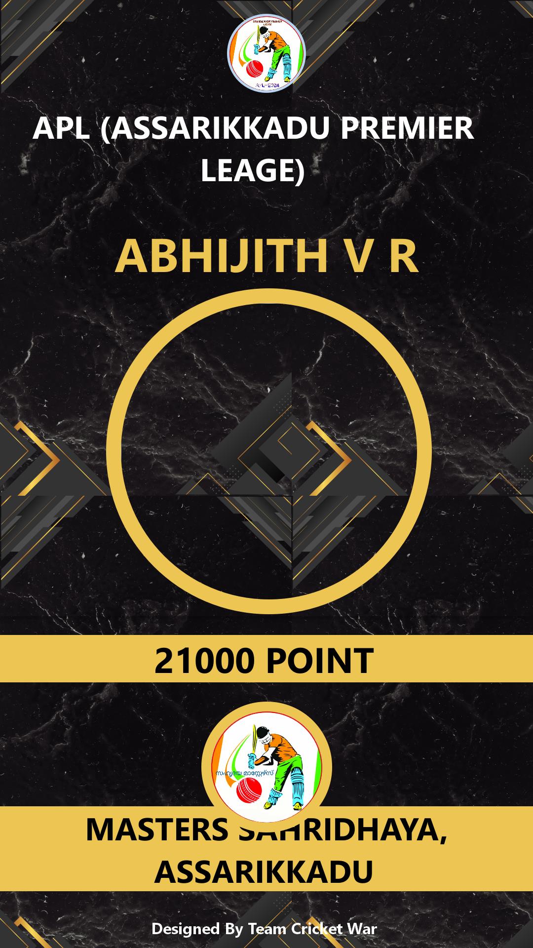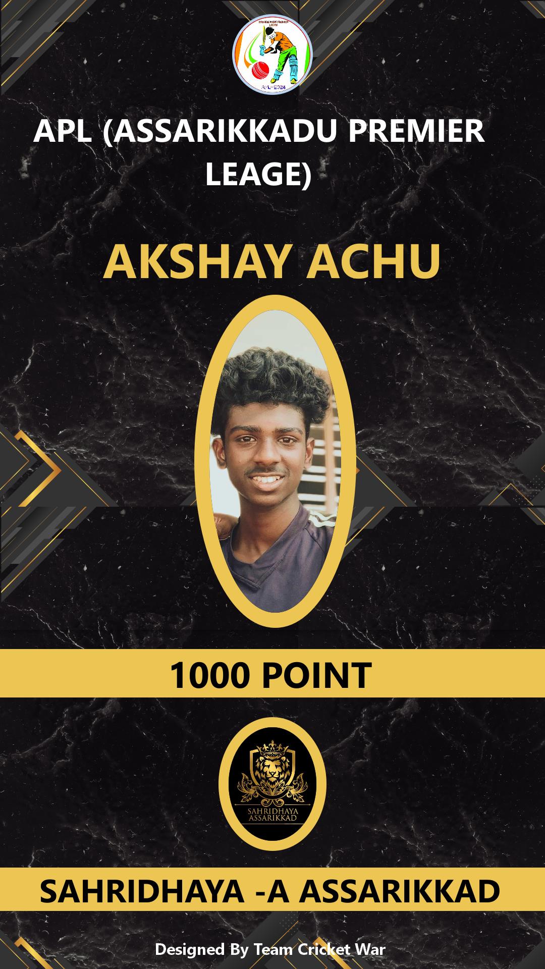 BATTING ALLROUNDER, AGE : 25 ASSARIKKAD VIEW PROFILE |