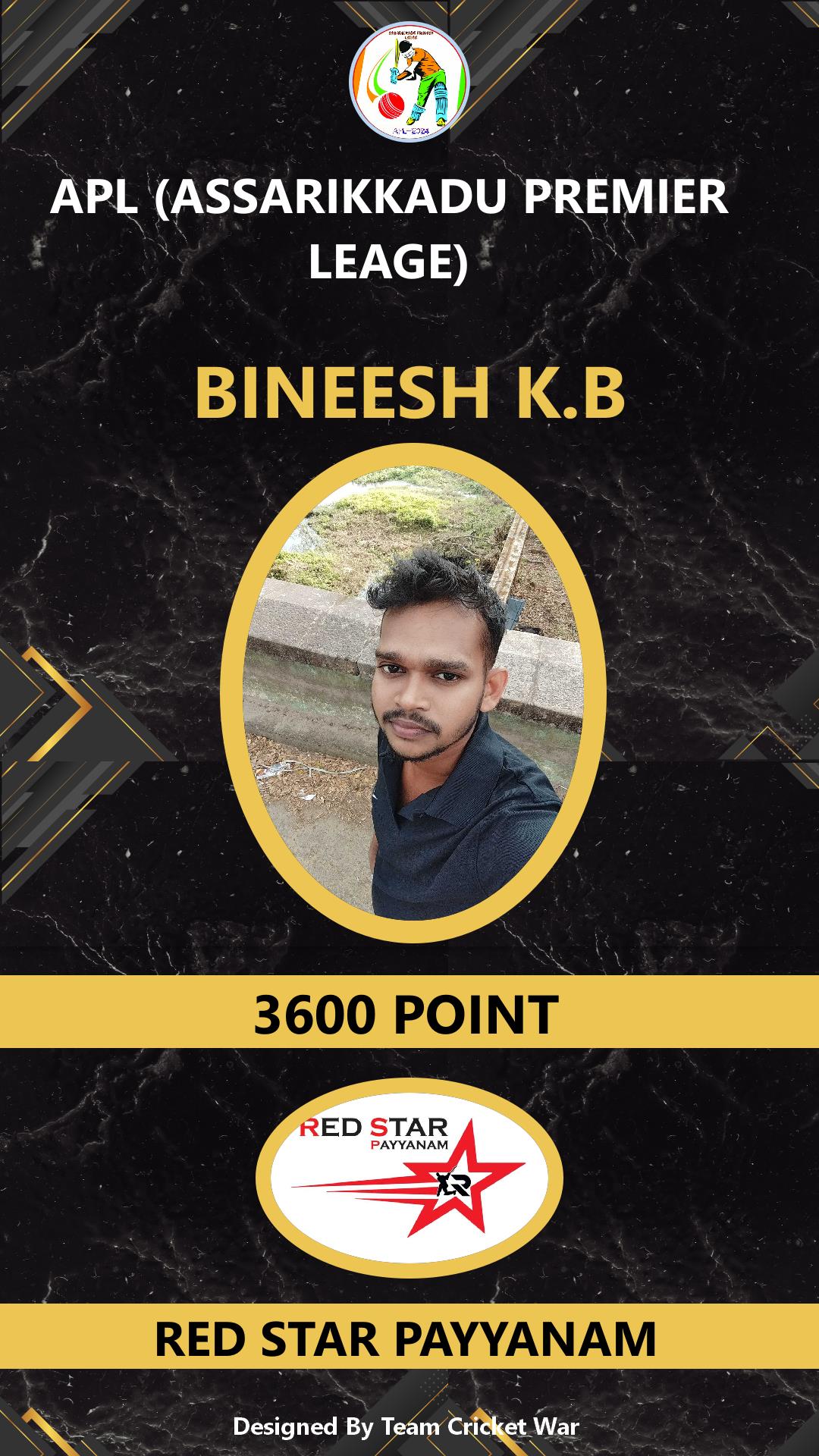 BATTING ALLROUNDER, AGE : 31 VELLACHAL Bid Amount : 9100 Team : RED STAR PAYYANAM Download ID Card VIEW PROFILE |