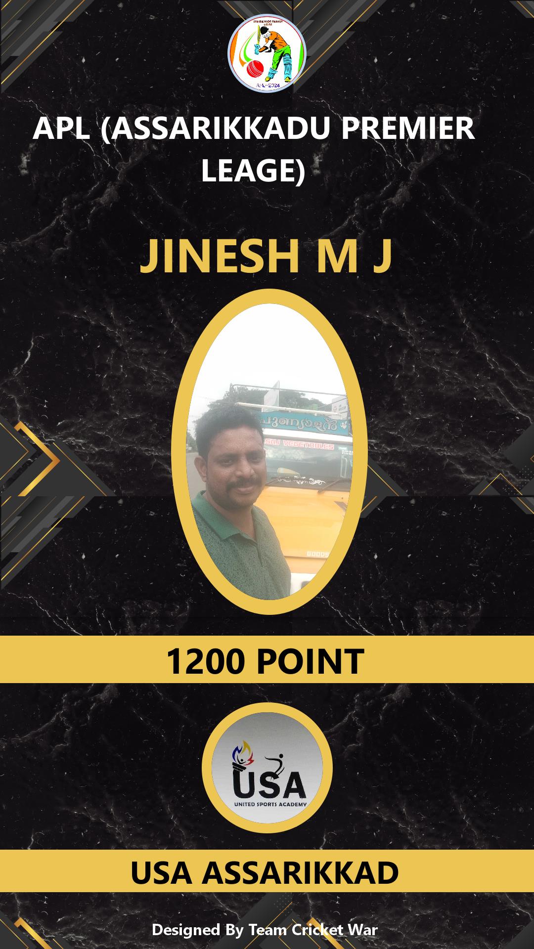 BOWLING ALLROUNDER, AGE : 28 CHERUMKUZHY Bid Amount : 1400 Team : USA ASSARIKKAD Download ID Card VIEW PROFILE |