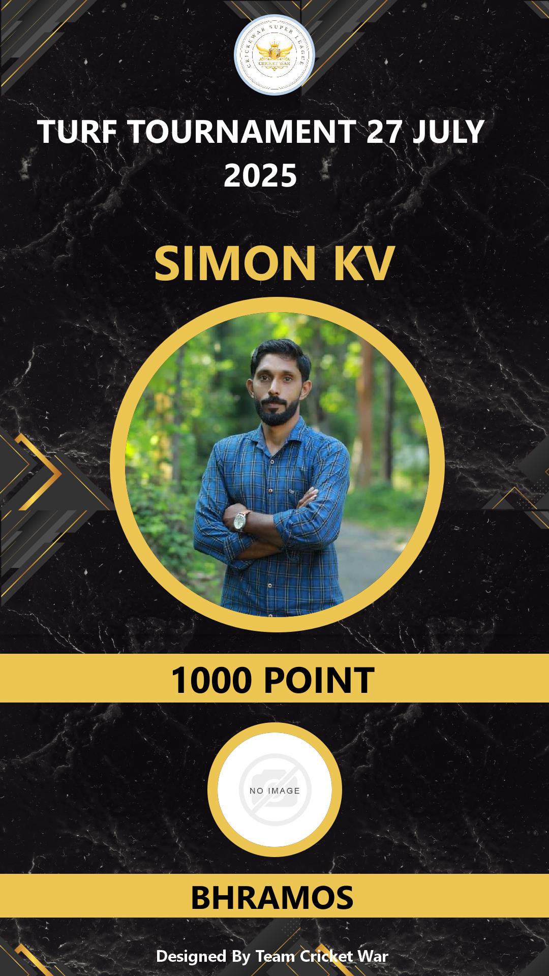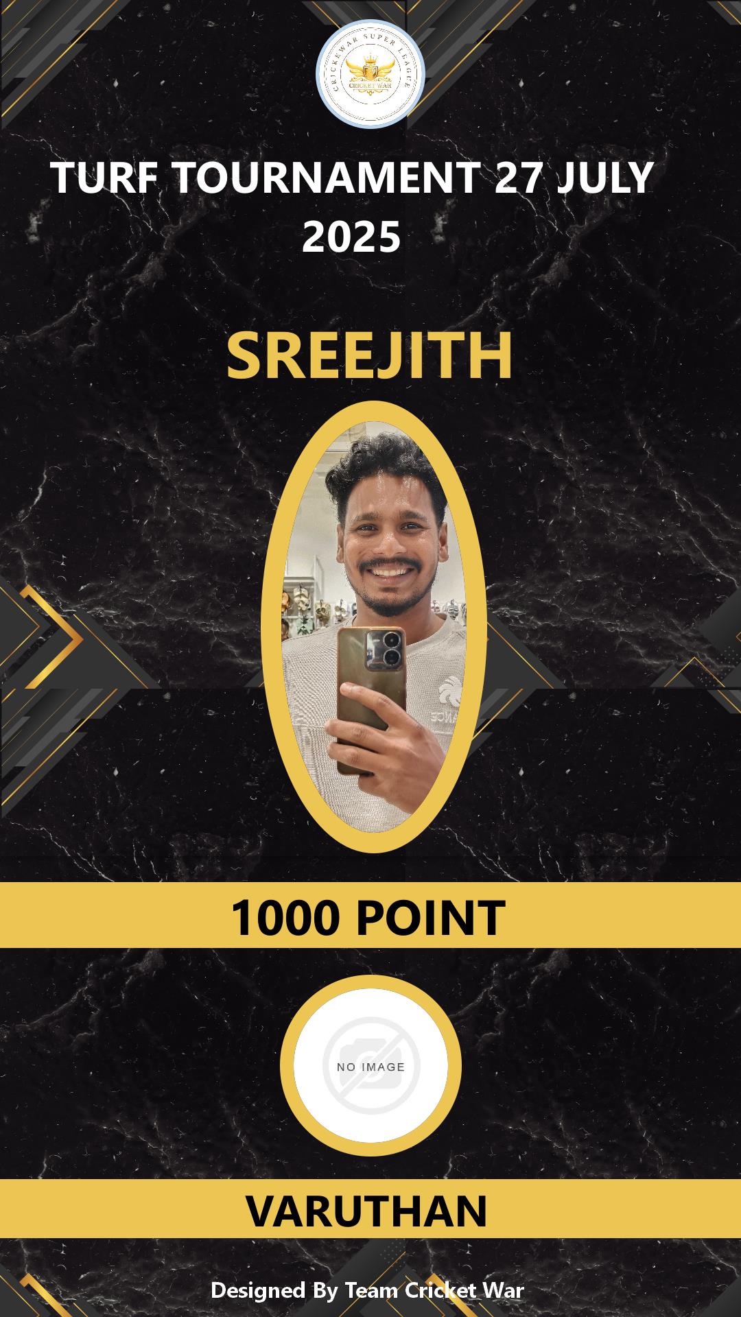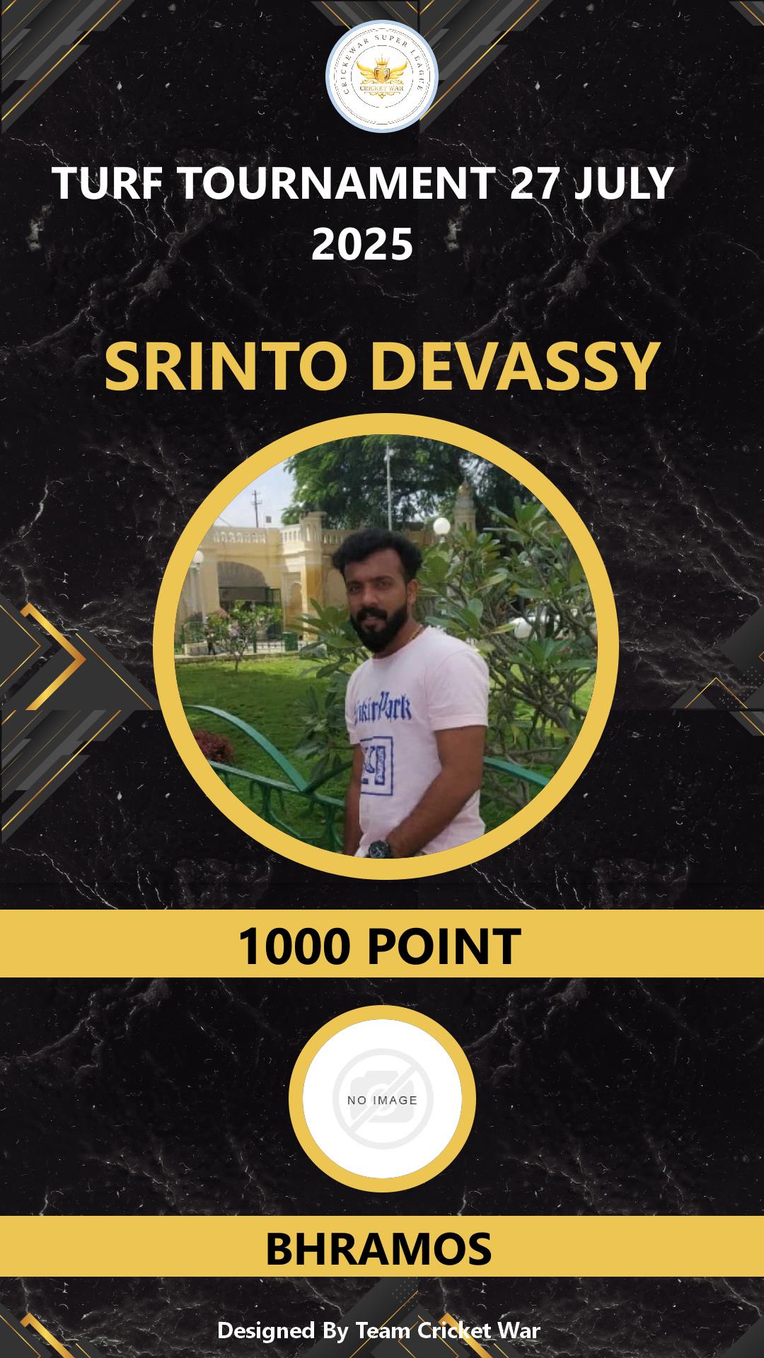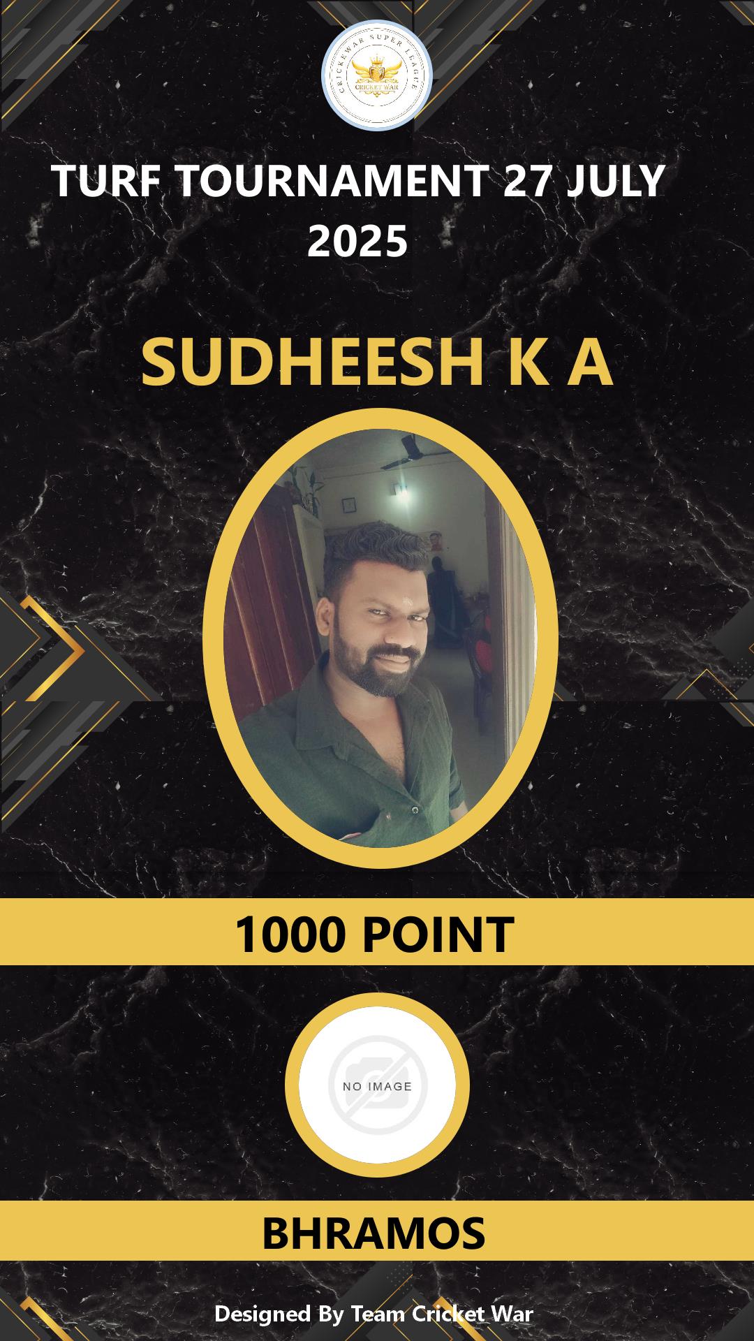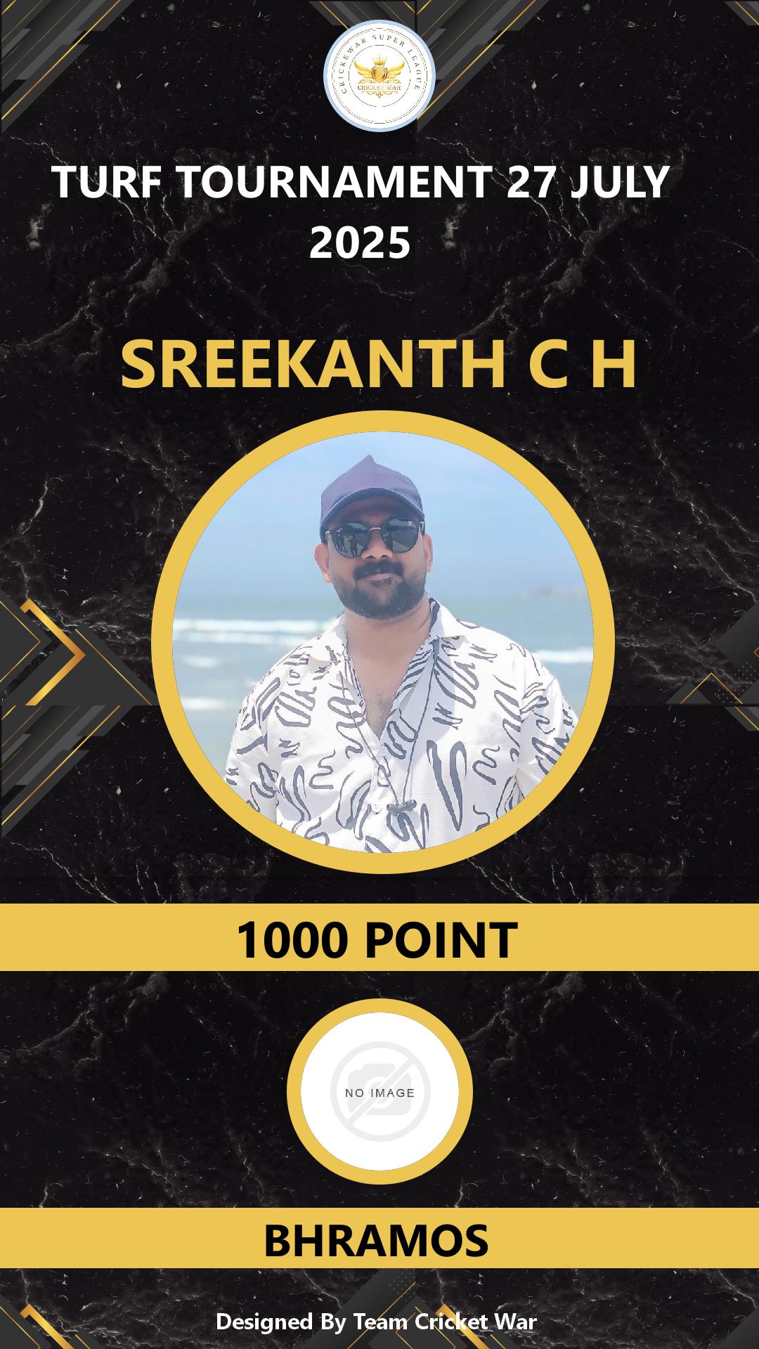 ALLROUNDER, AGE : 28 POOKODE Bid Amount : 1000 Team : BHRAMOS Download ID Card VIEW PROFILE |