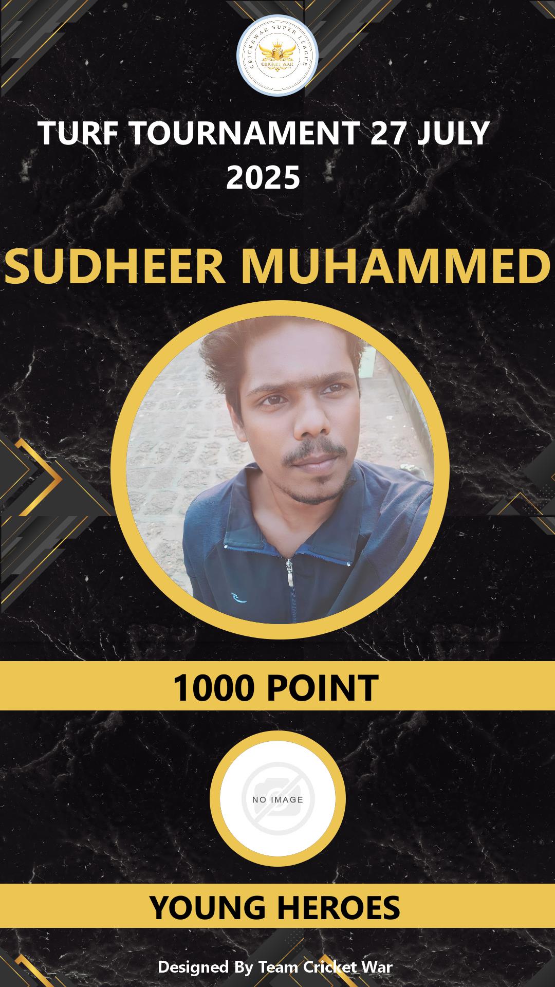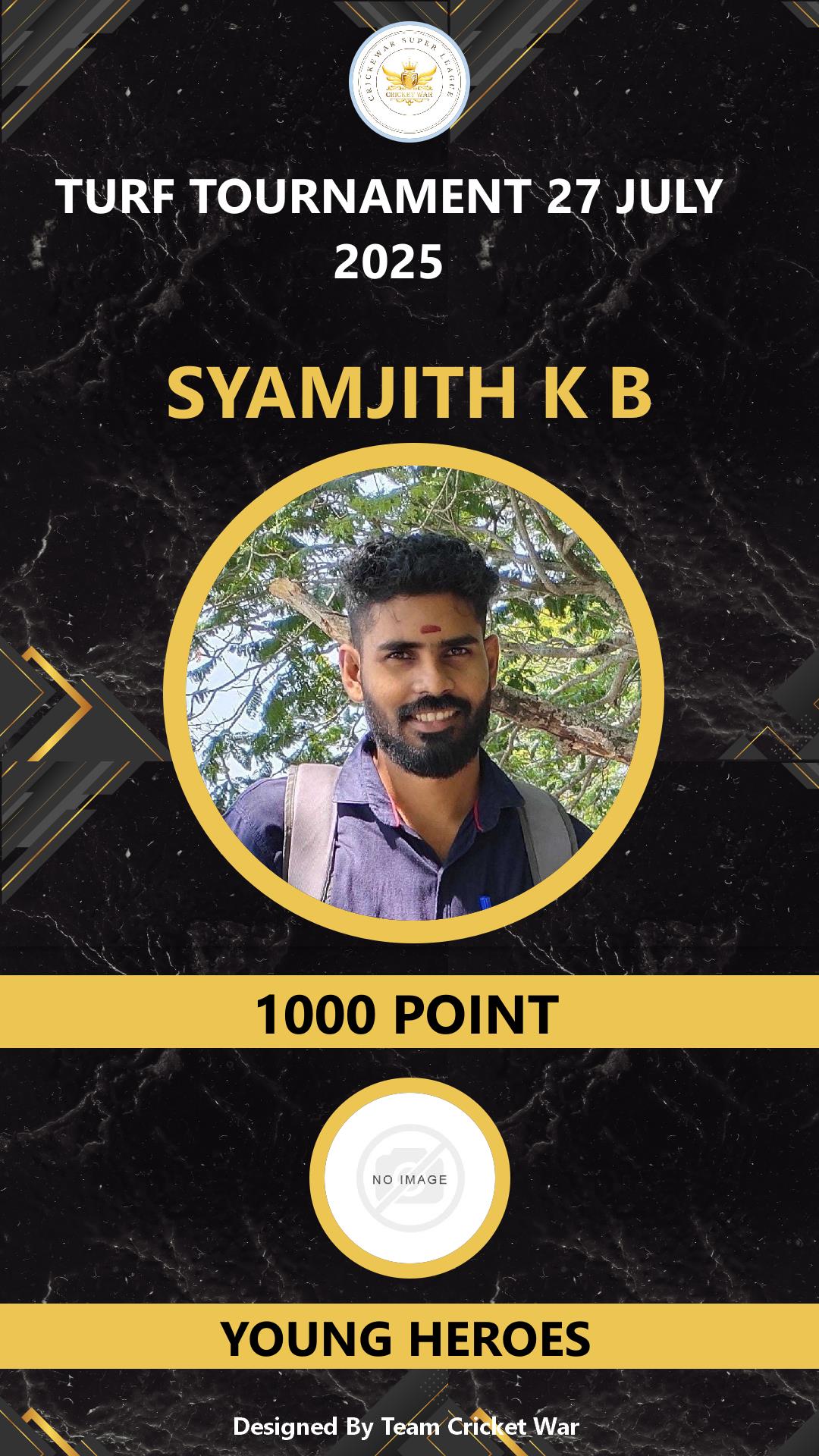 ALLROUNDER, AGE : 29 MUPLIYAM Bid Amount : 1000 Team : YOUNG HEROES Download ID Card VIEW PROFILE |