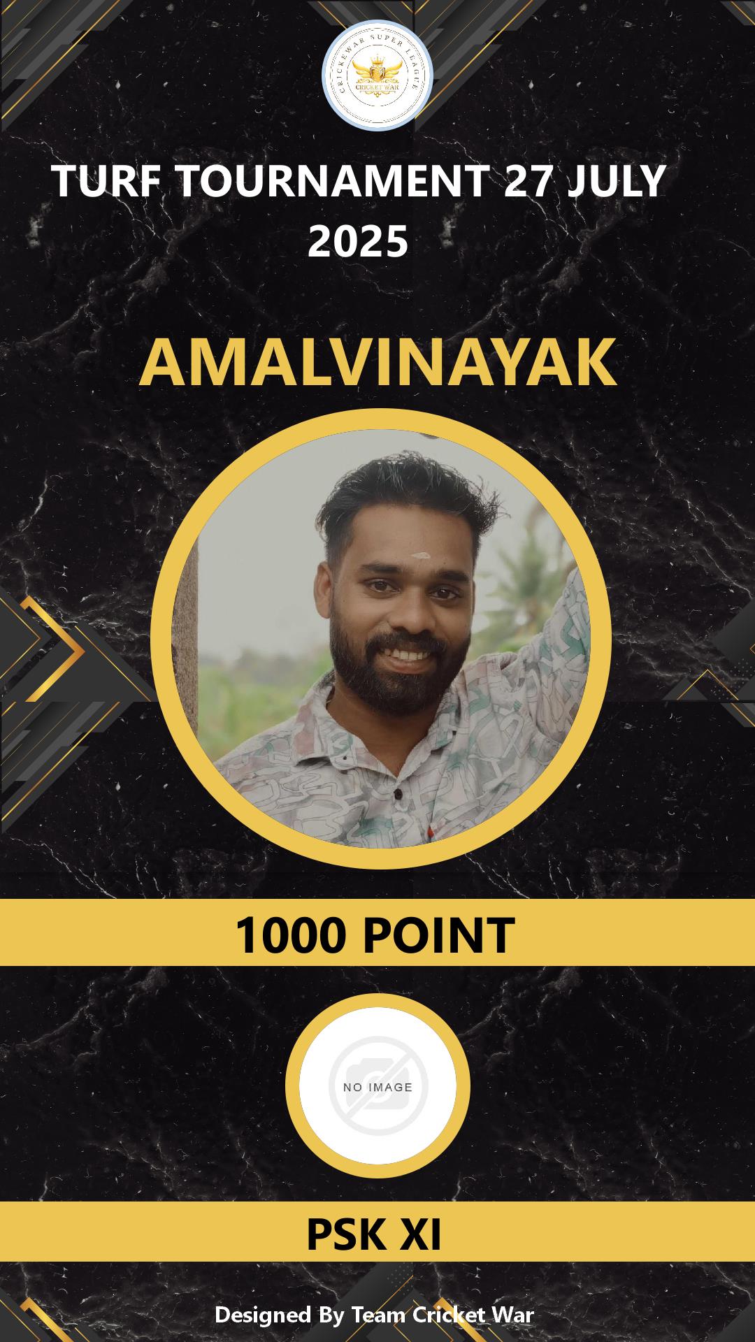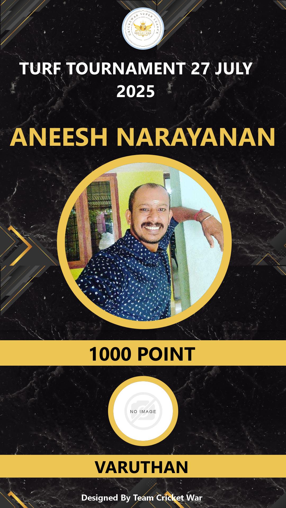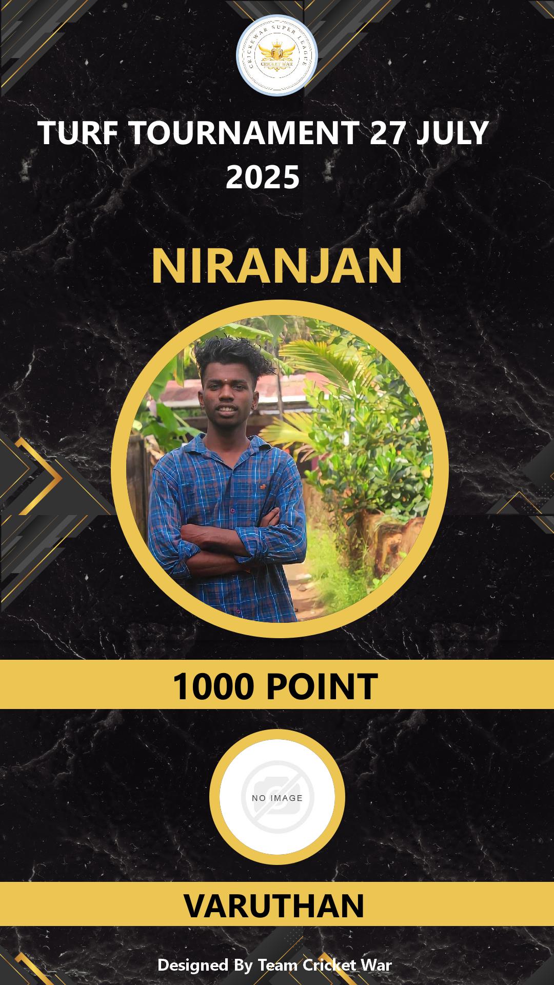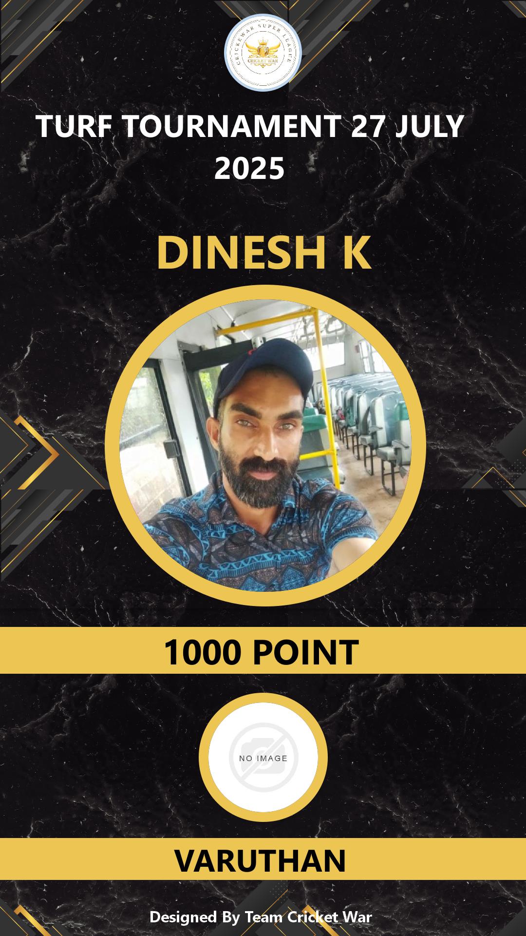 ALLROUNDER, AGE : 35 POUND JN Bid Amount : 1000 Team : VARUTHAN Download ID Card VIEW PROFILE |