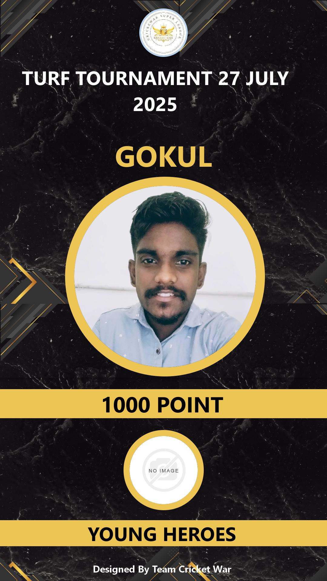 ALLROUNDER, AGE : 28 NANDHIPULAM Bid Amount : 1000 Team : YOUNG HEROES Download ID Card VIEW PROFILE |