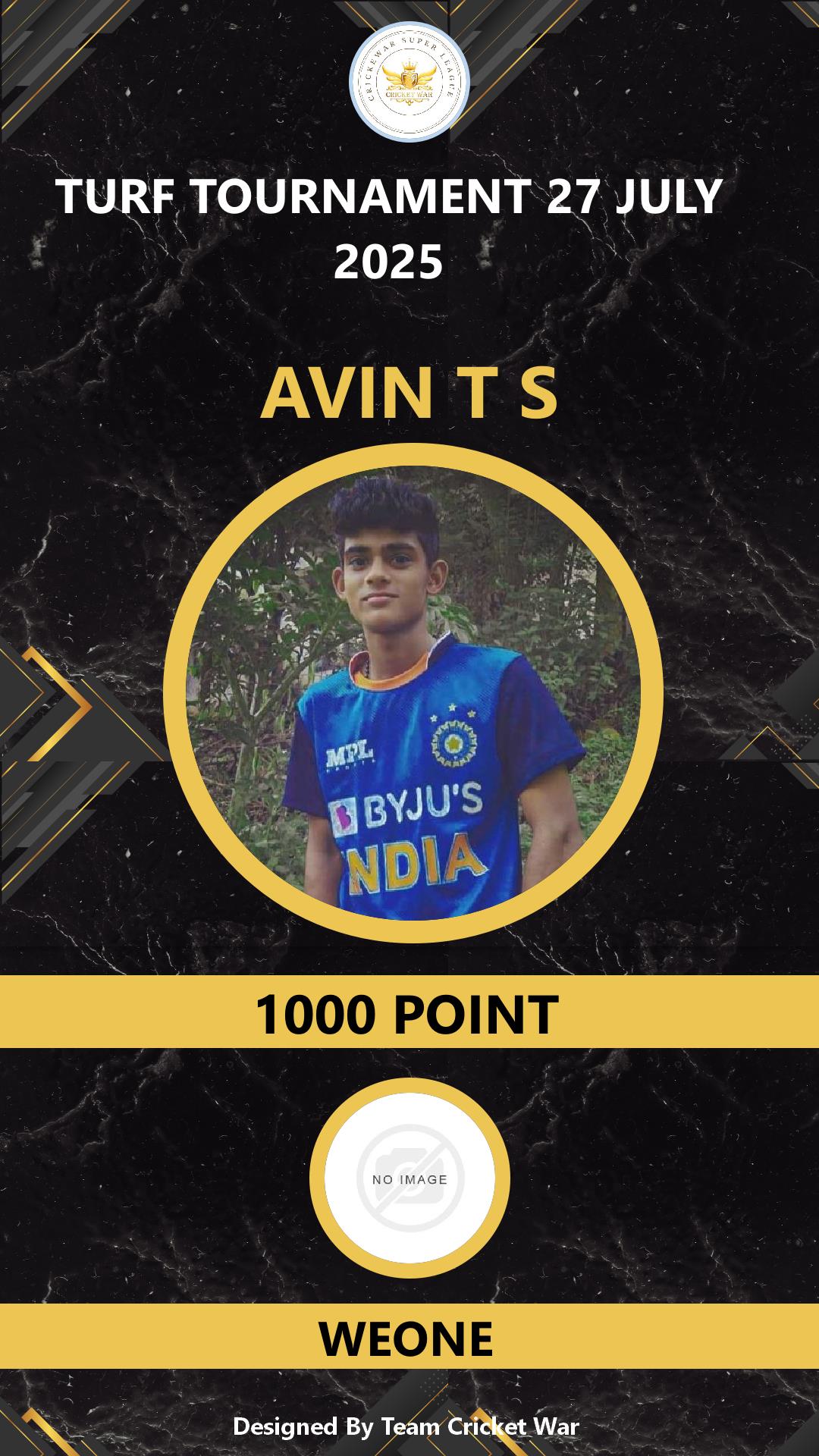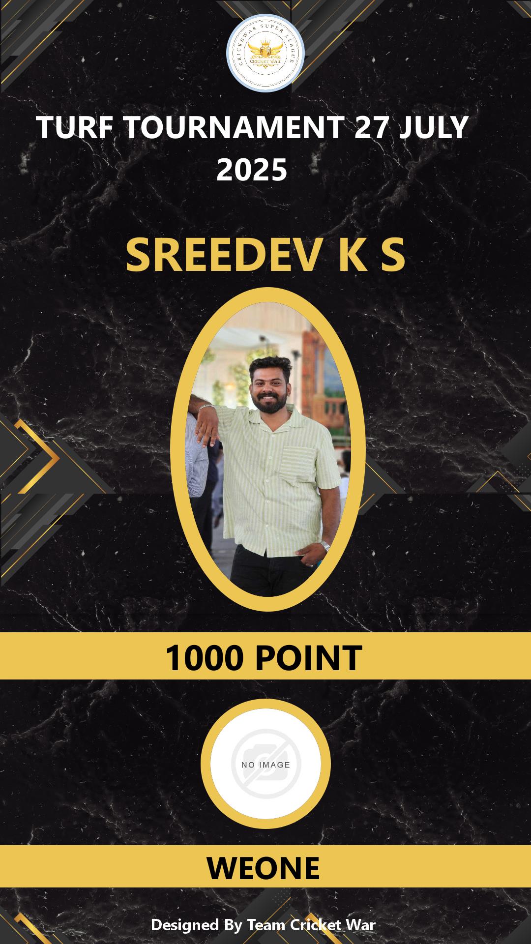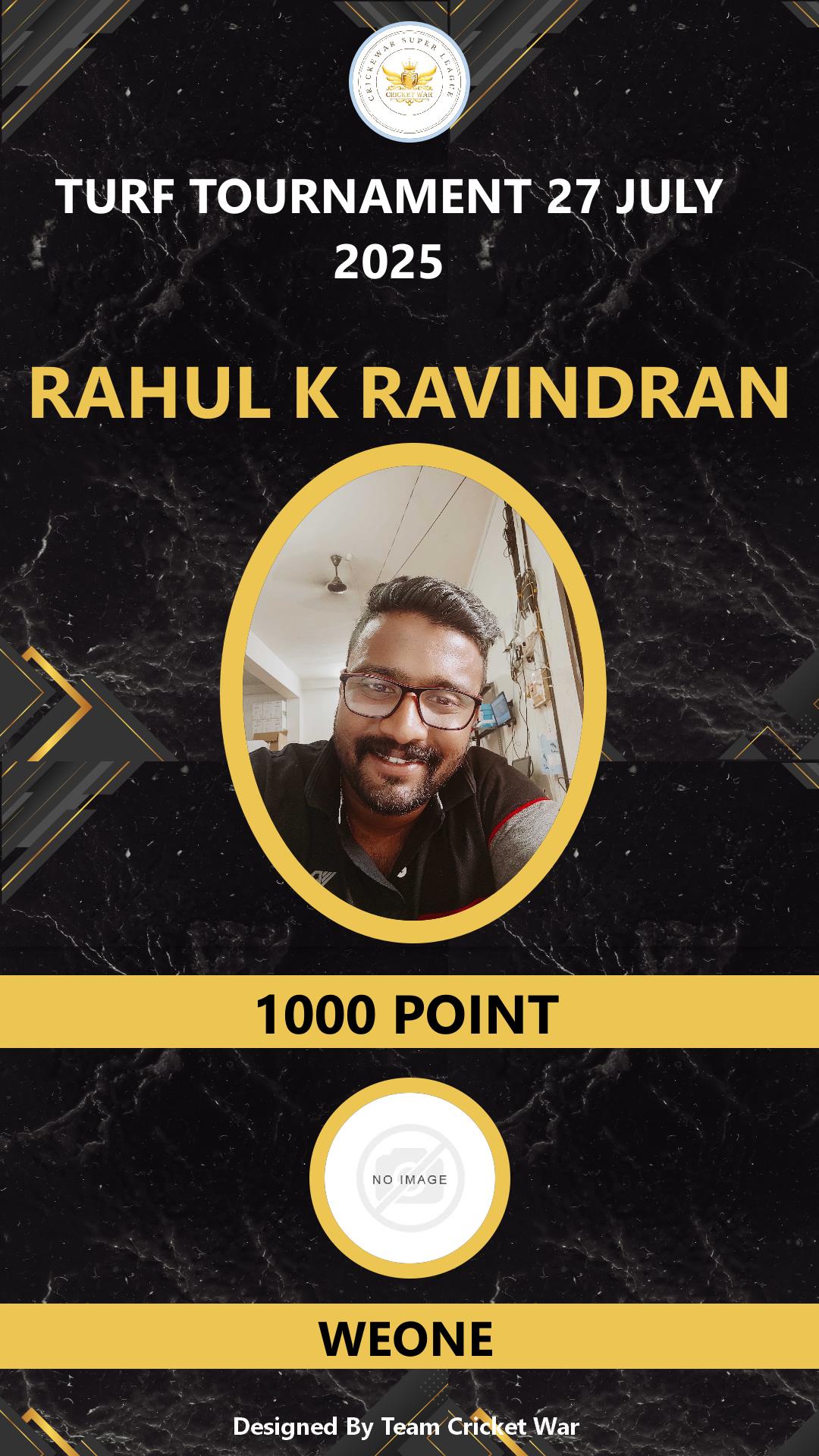 ALLROUNDER, AGE : 40 VARANDARAPPILLY Bid Amount : 1000 Team : WEONE Download ID Card VIEW PROFILE |