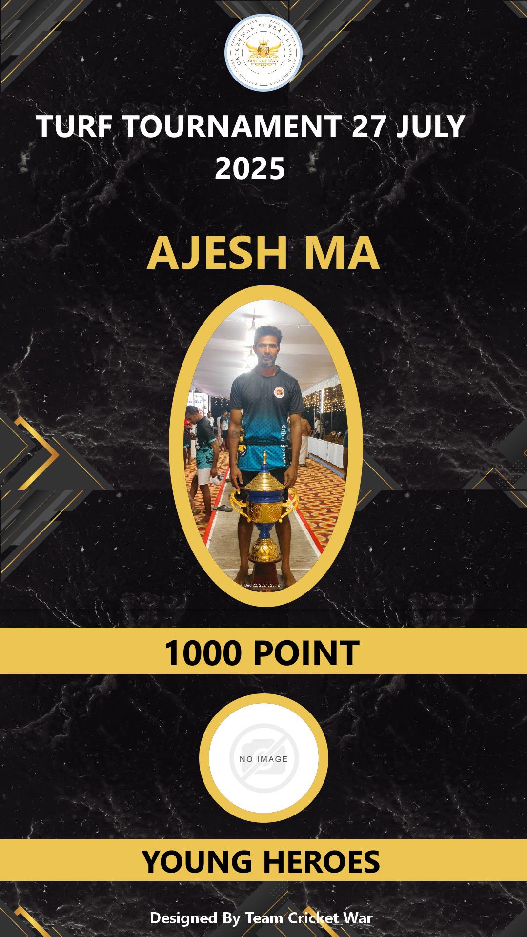ALLROUNDER, AGE : 41 POUND JN Bid Amount : 1000 Team : YOUNG HEROES Download ID Card VIEW PROFILE |
