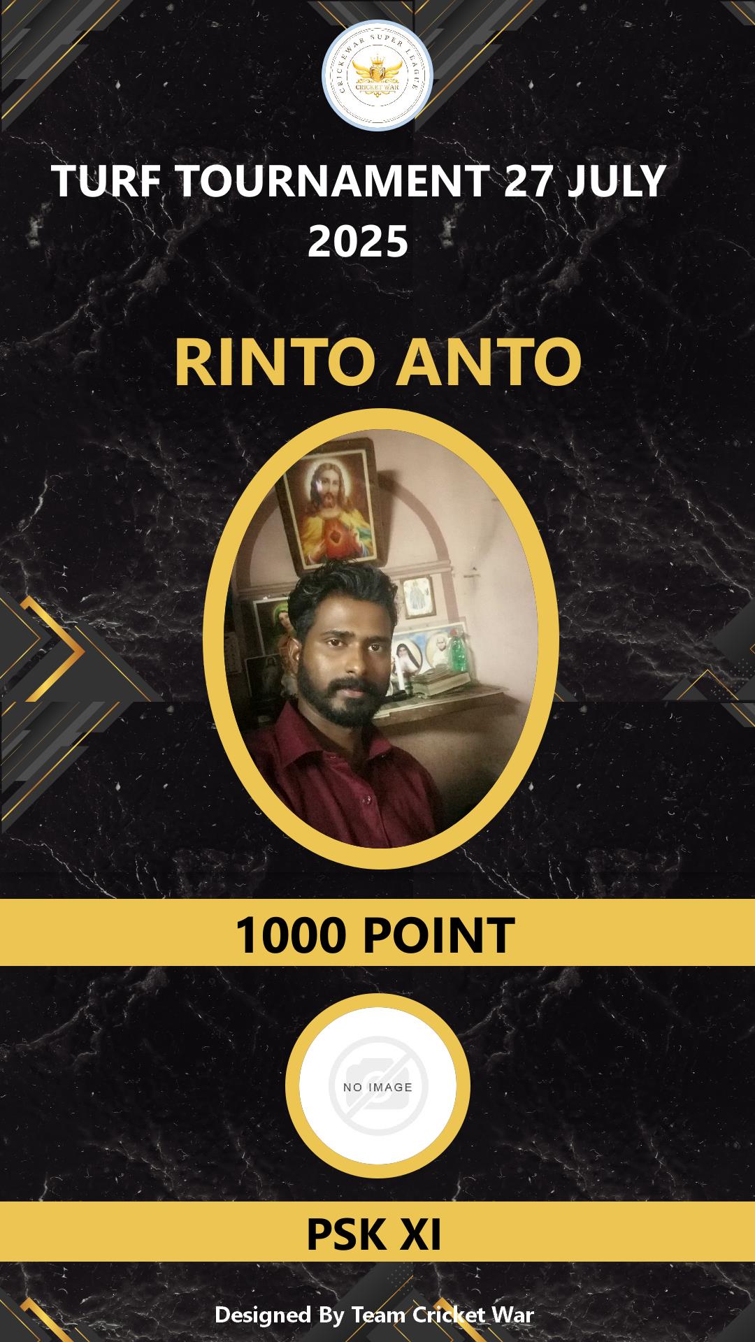 ALLROUNDER, AGE : 29 VARANDARAPPILLY Bid Amount : 1000 Team : PSK XI Download ID Card VIEW PROFILE |