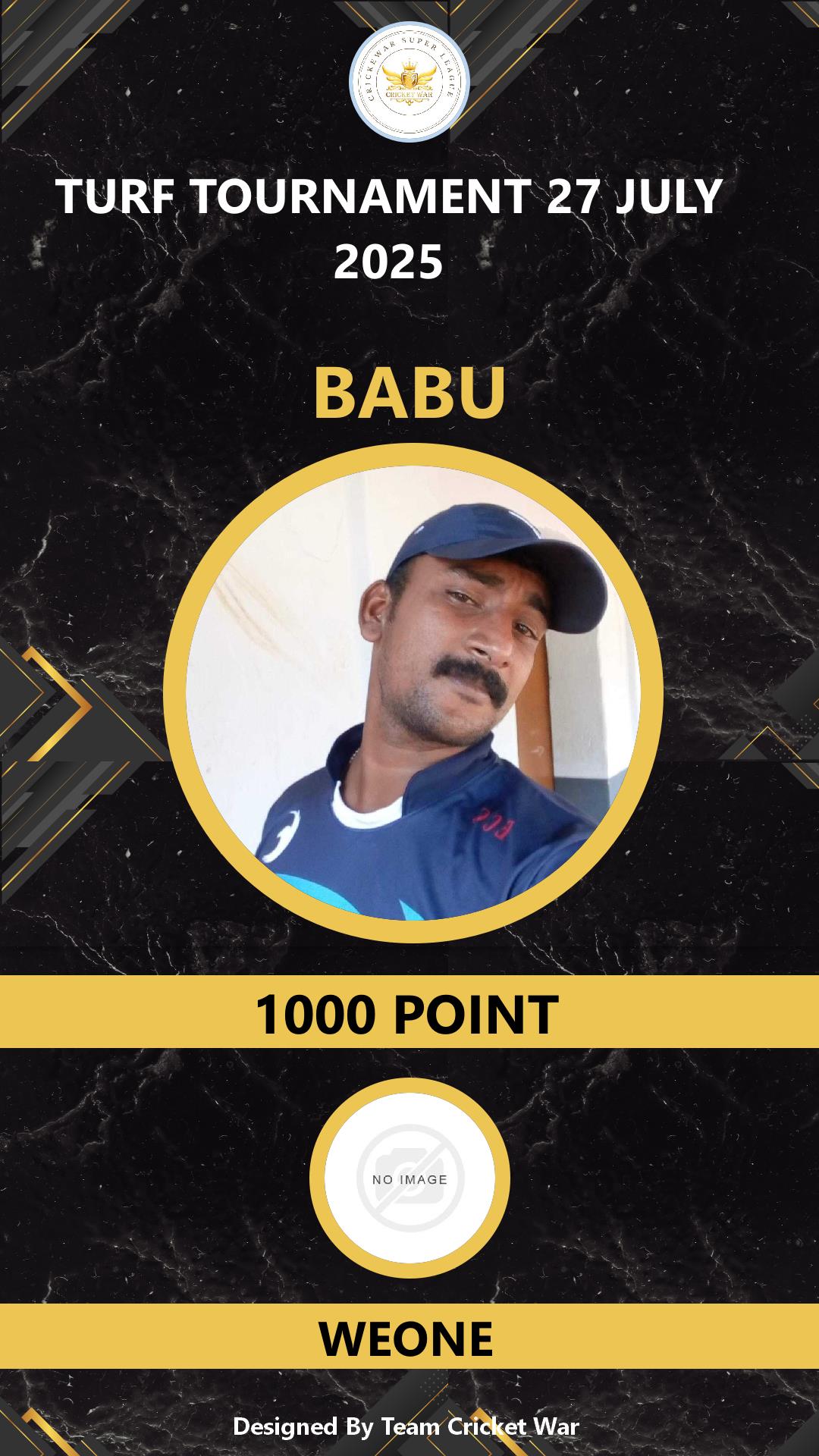 BATTING ALLROUNDER, AGE : 38 MANNAMPETTA Bid Amount : 1000 Team : WEONE Download ID Card VIEW PROFILE |