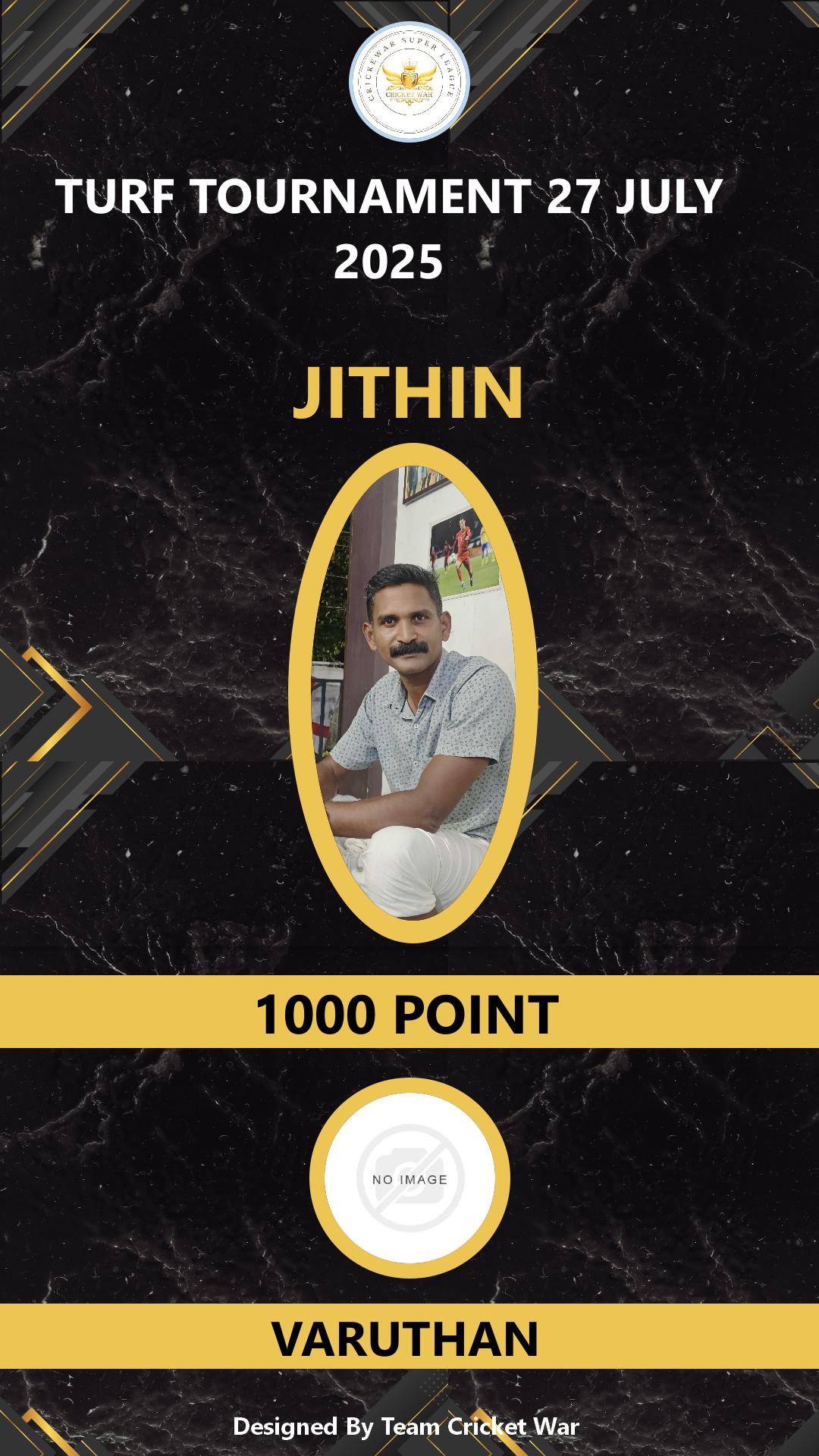 ALLROUNDER, AGE : 29 Bid Amount : 1000 Team : VARUTHAN Download ID Card |