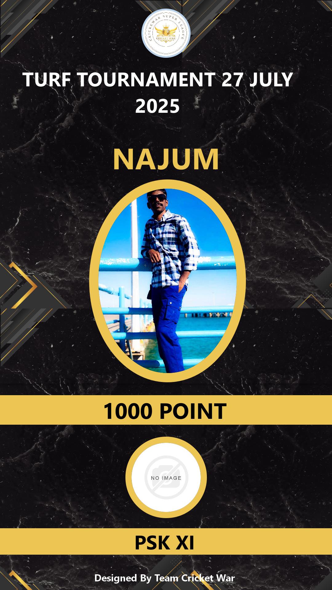 BOWLING ALLROUNDER, AGE : 33 POUND Bid Amount : 1000 Team : PSK XI Download ID Card VIEW PROFILE |