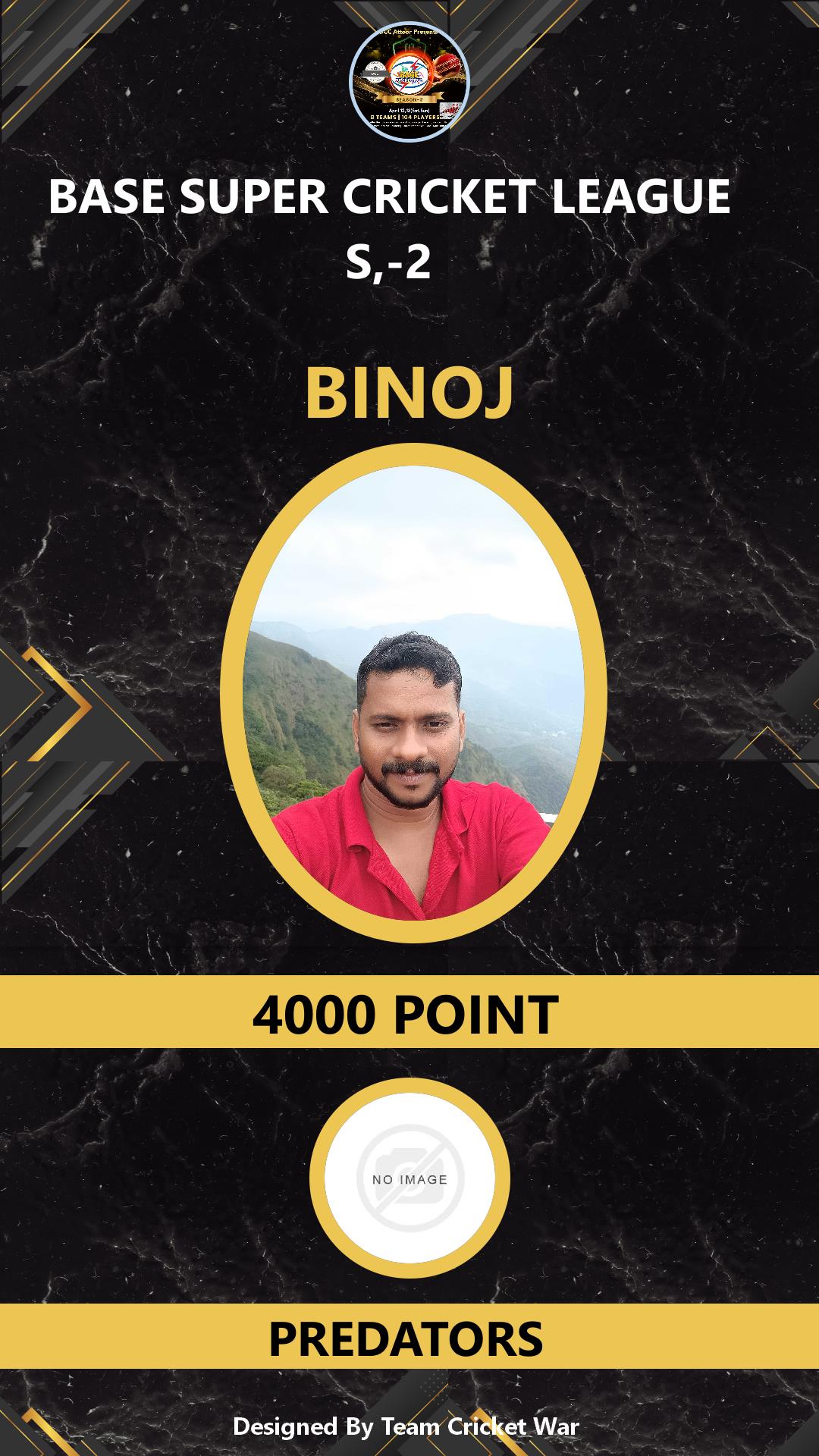 BOWLING ALLROUNDER, AGE : 34 VETTILATTIRI Bid Amount : 14000 Team : PREDATORS Download ID Card VIEW PROFILE |