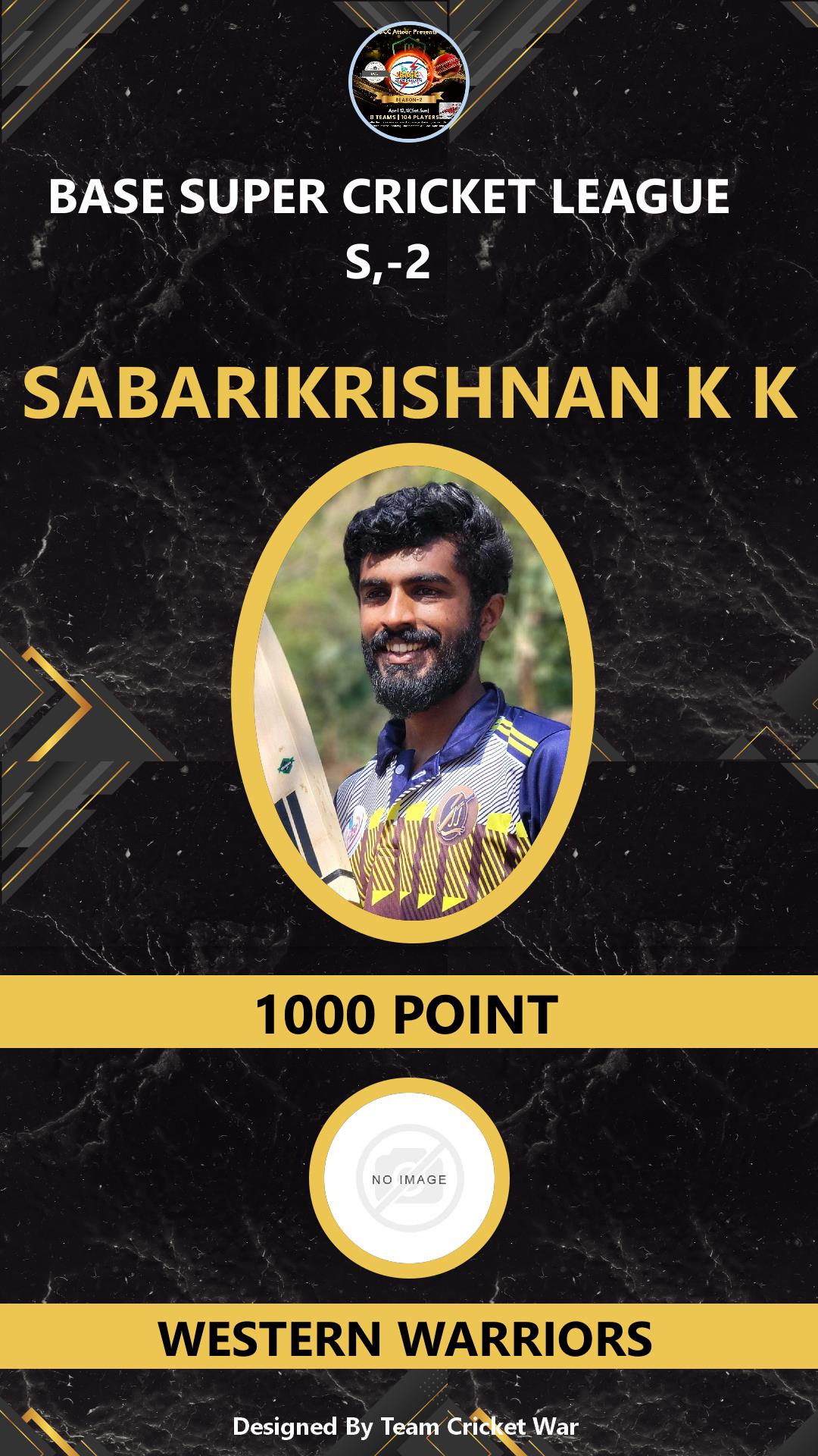 BATSMAN, AGE : 36 CHELAKKARA Bid Amount : 16000 Team : WESTERN WARRIORS Download ID Card |
