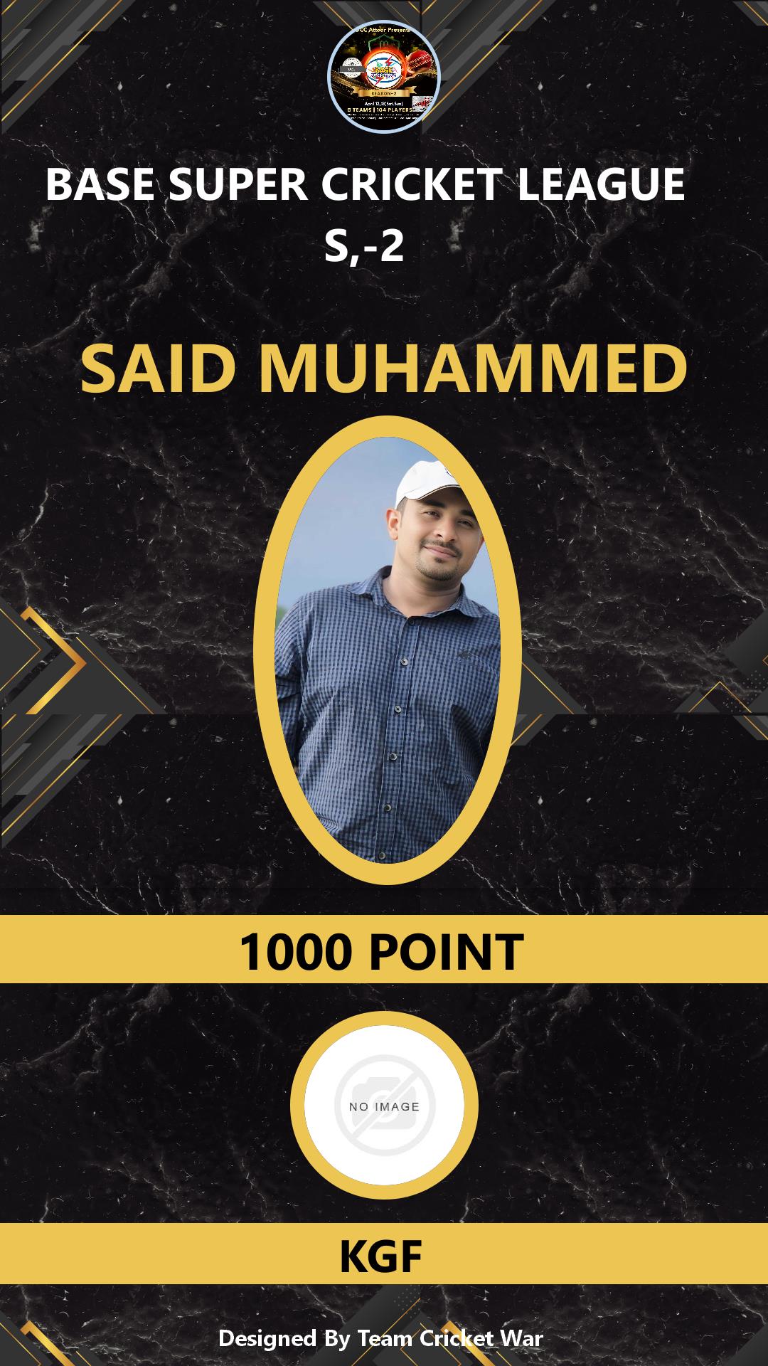 BATTING ALLROUNDER, AGE : 41 VETTIKKATTIRI Bid Amount : 3000 Team : SCC Download ID Card VIEW PROFILE |