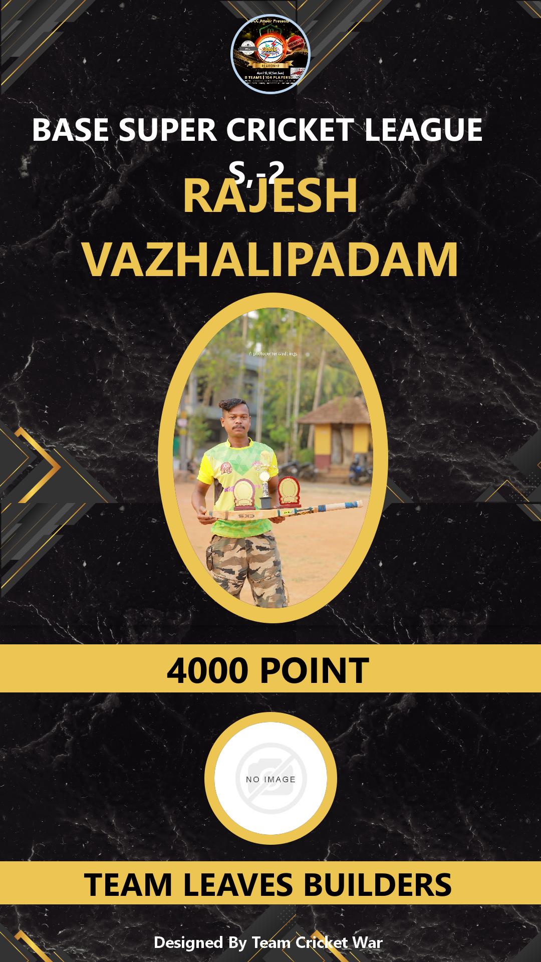 BATSMAN, AGE : 37 VAZHALIPPADAM Bid Amount : 0 Team : TEAM LEAVES BUILDERS Download ID Card VIEW PROFILE |