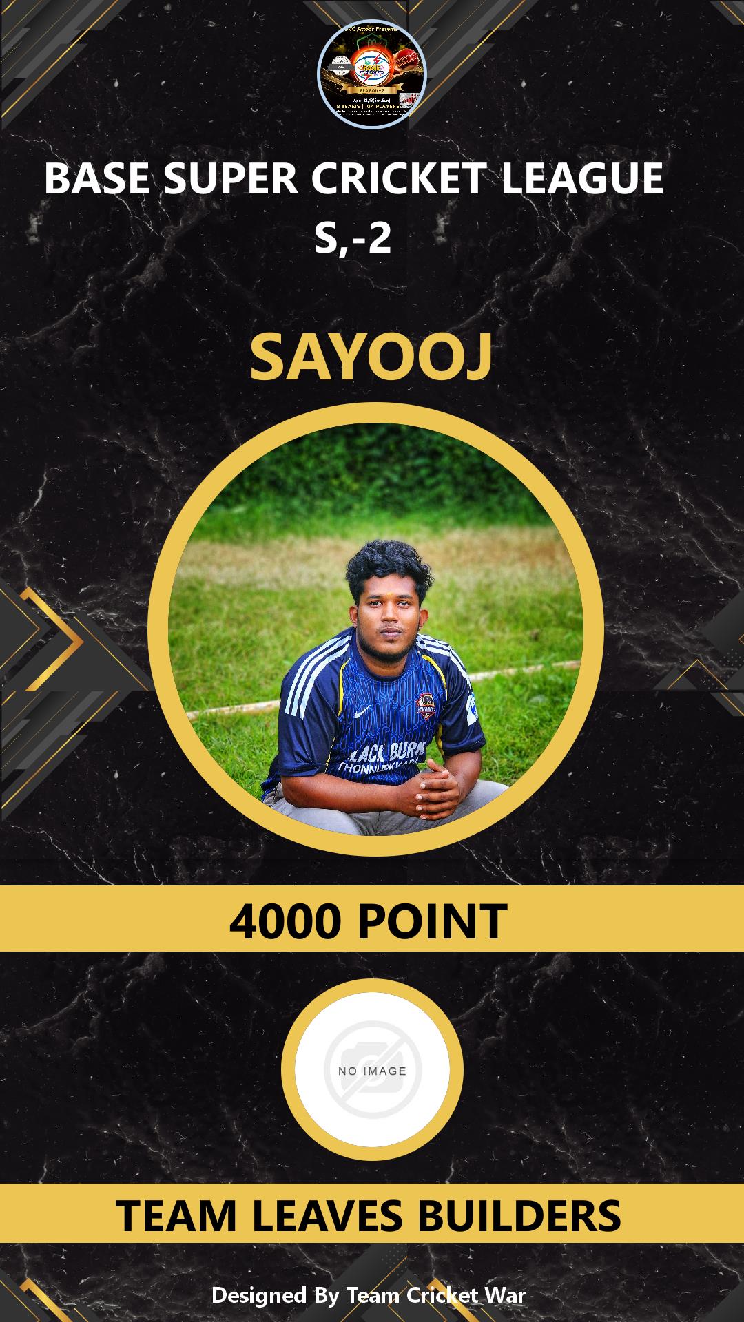 BATTING ALLROUNDER, AGE : 32 CHELAKK ARA Bid Amount : 7000 Team : TEAM LEAVES BUILDERS Download ID Card VIEW PROFILE |