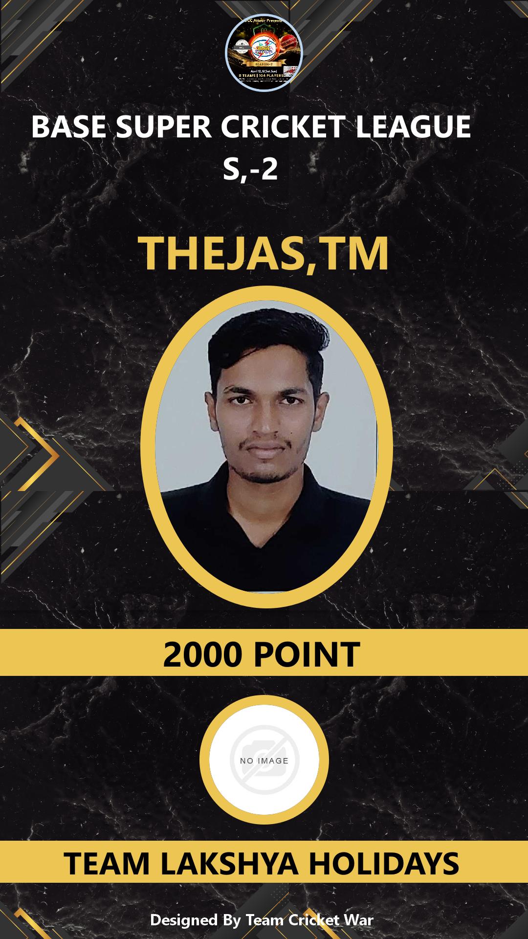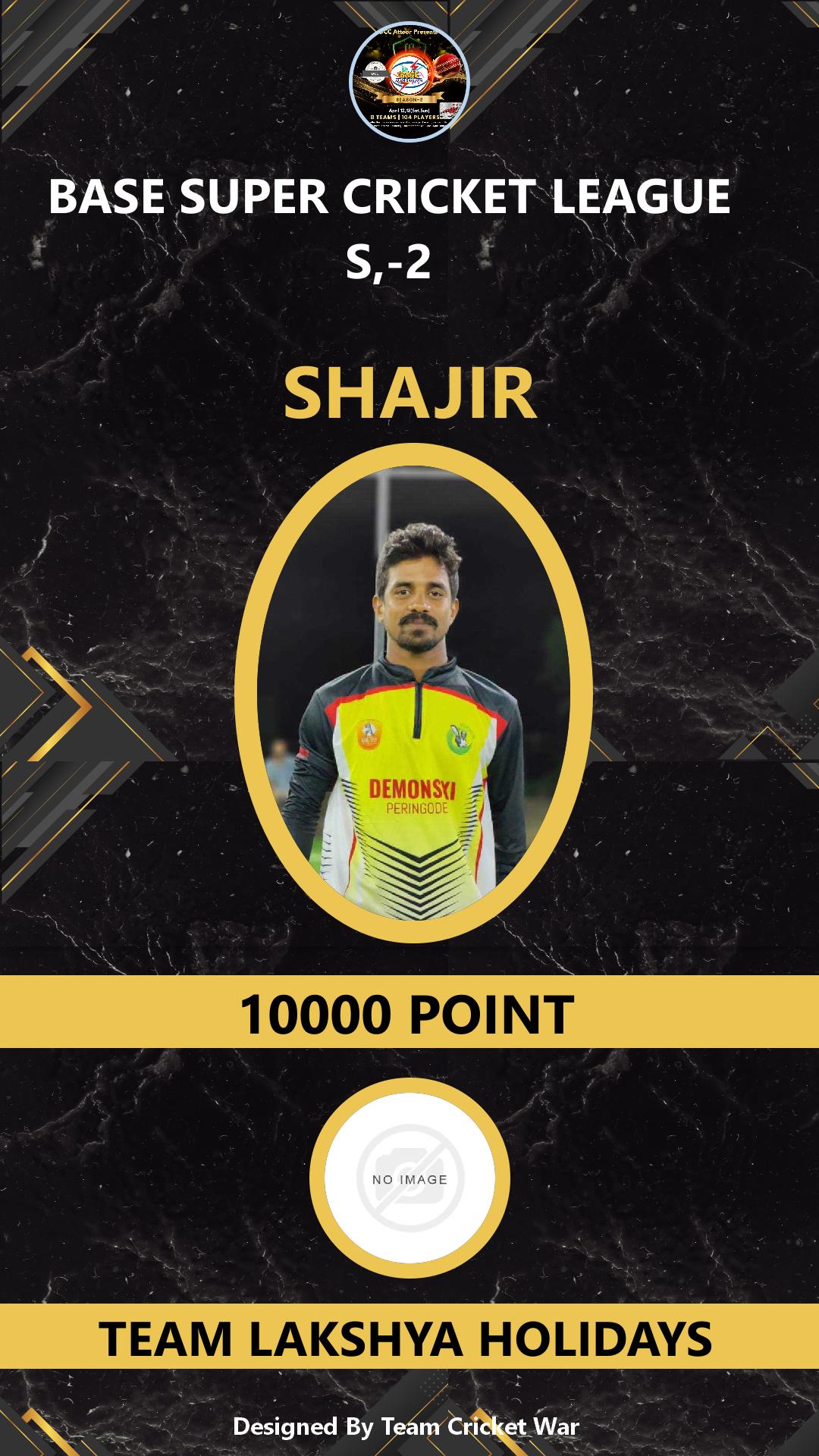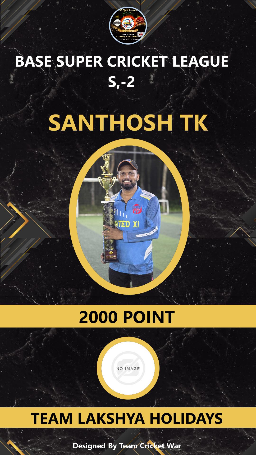 ALLROUNDER, AGE : 34 CHERUTHURUTHY Bid Amount : 9000 Team : TEAM LAKSHYA HOLIDAYS Download ID Card VIEW PROFILE |