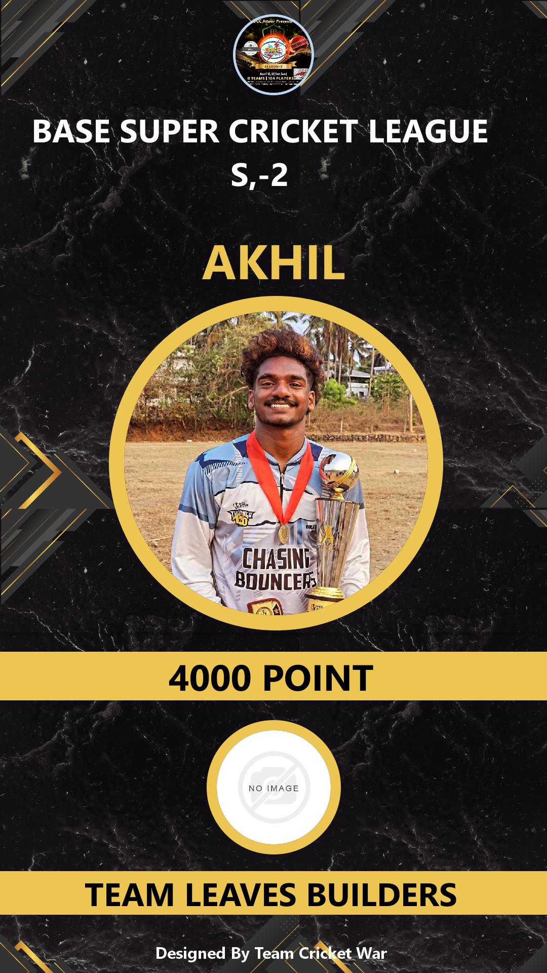 BATSMAN, AGE : 29 CHELAKKARA Bid Amount : 4000 Team : TEAM LEAVES BUILDERS Download ID Card VIEW PROFILE |