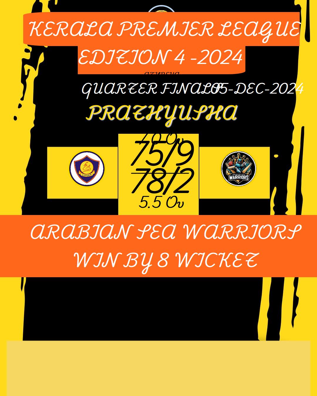 ARABIAN SEA WARRIORS WIN BY 8 WICKET