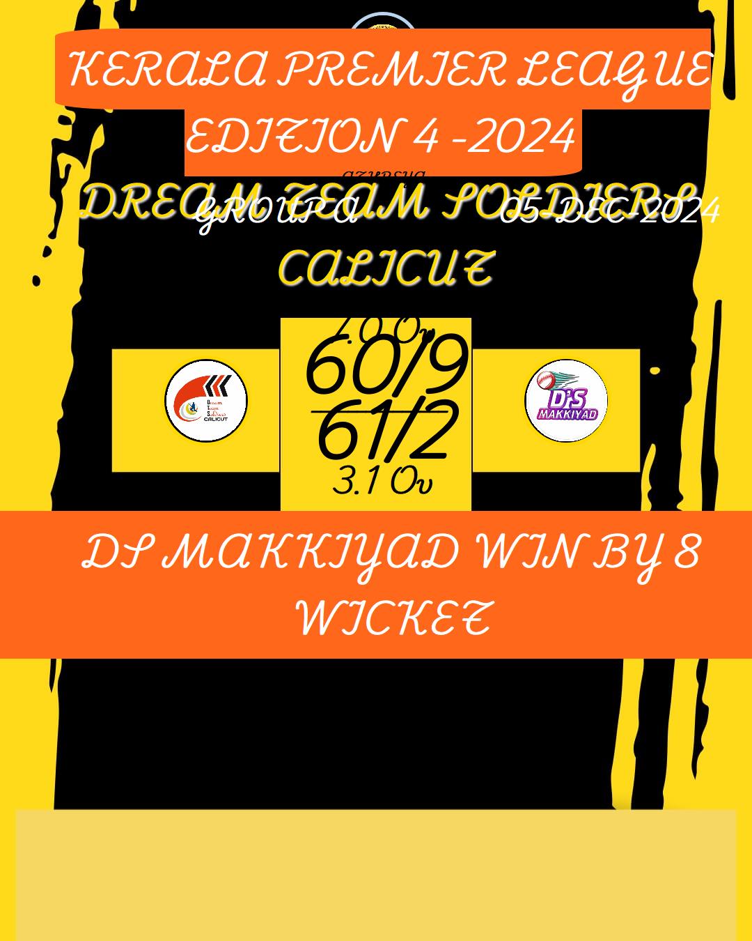 DREAM TEAM SOLDIERS CALICUT WIN BY 6 WICKET