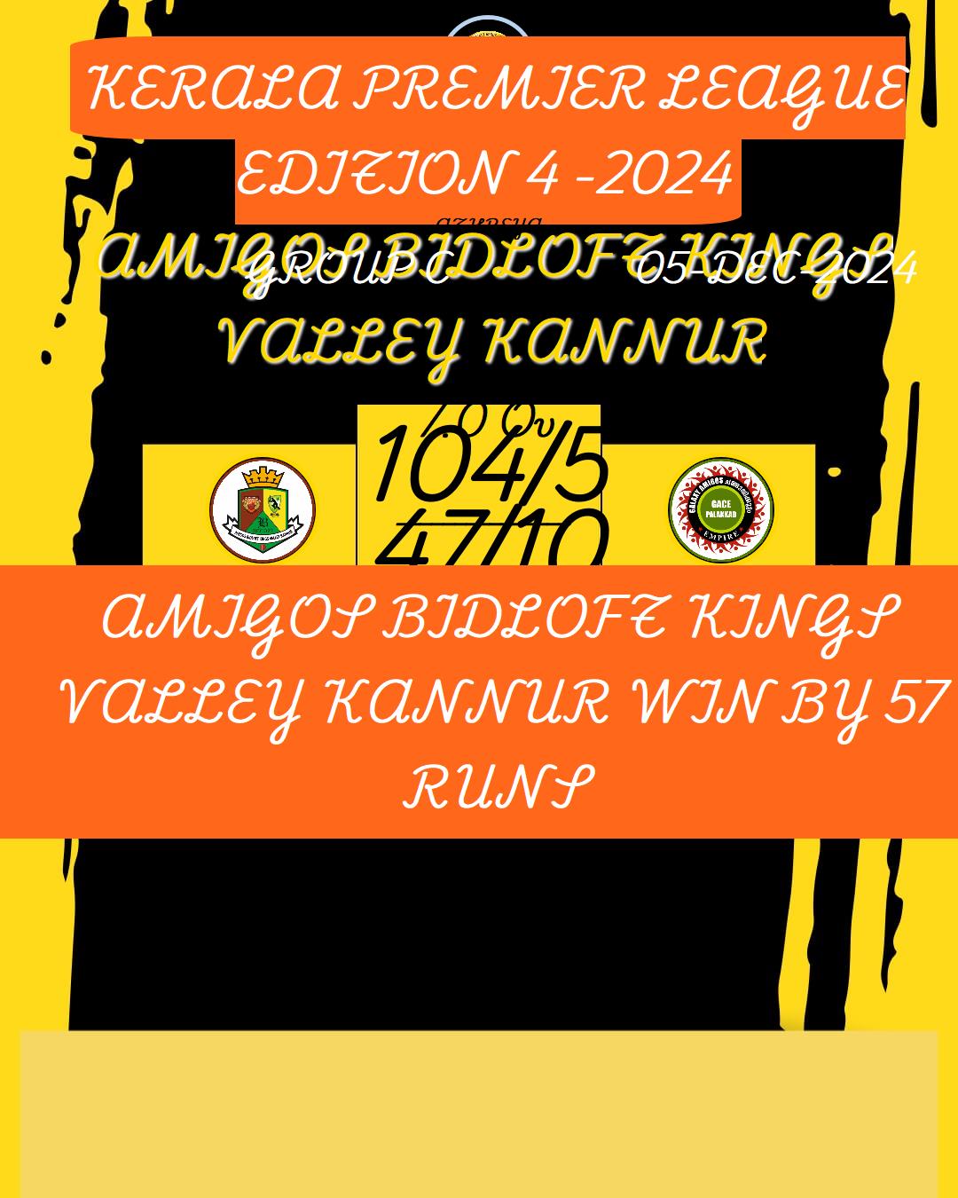 AMIGOS BIDLOFT KINGS VALLEY KANNUR WIN BY 57 RUNS