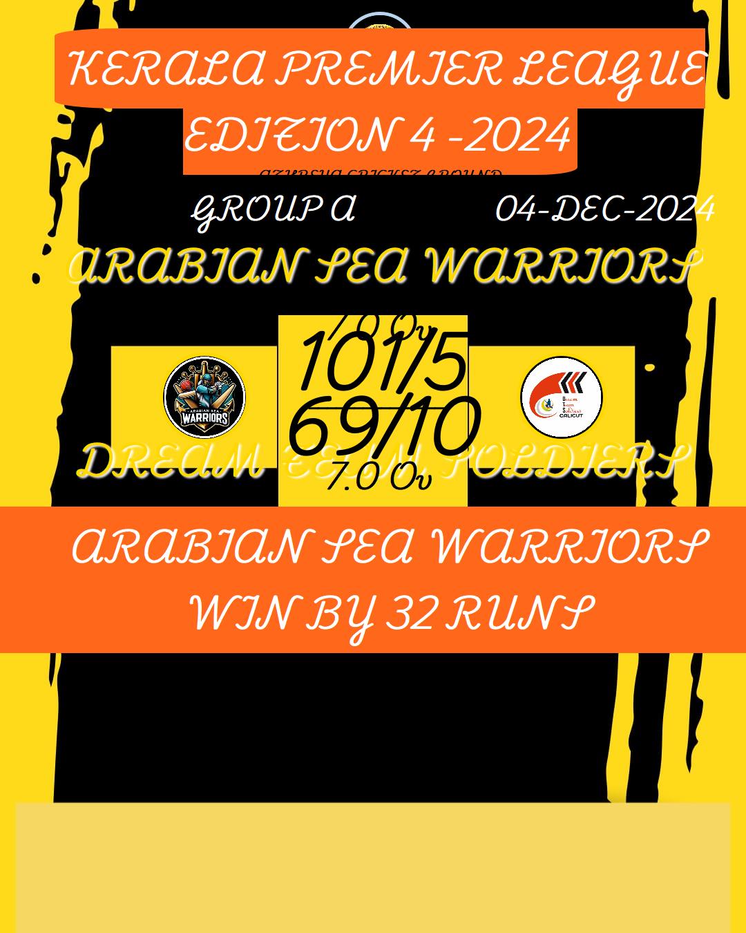 ARABIAN SEA WARRIORS WIN BY 32 RUNS