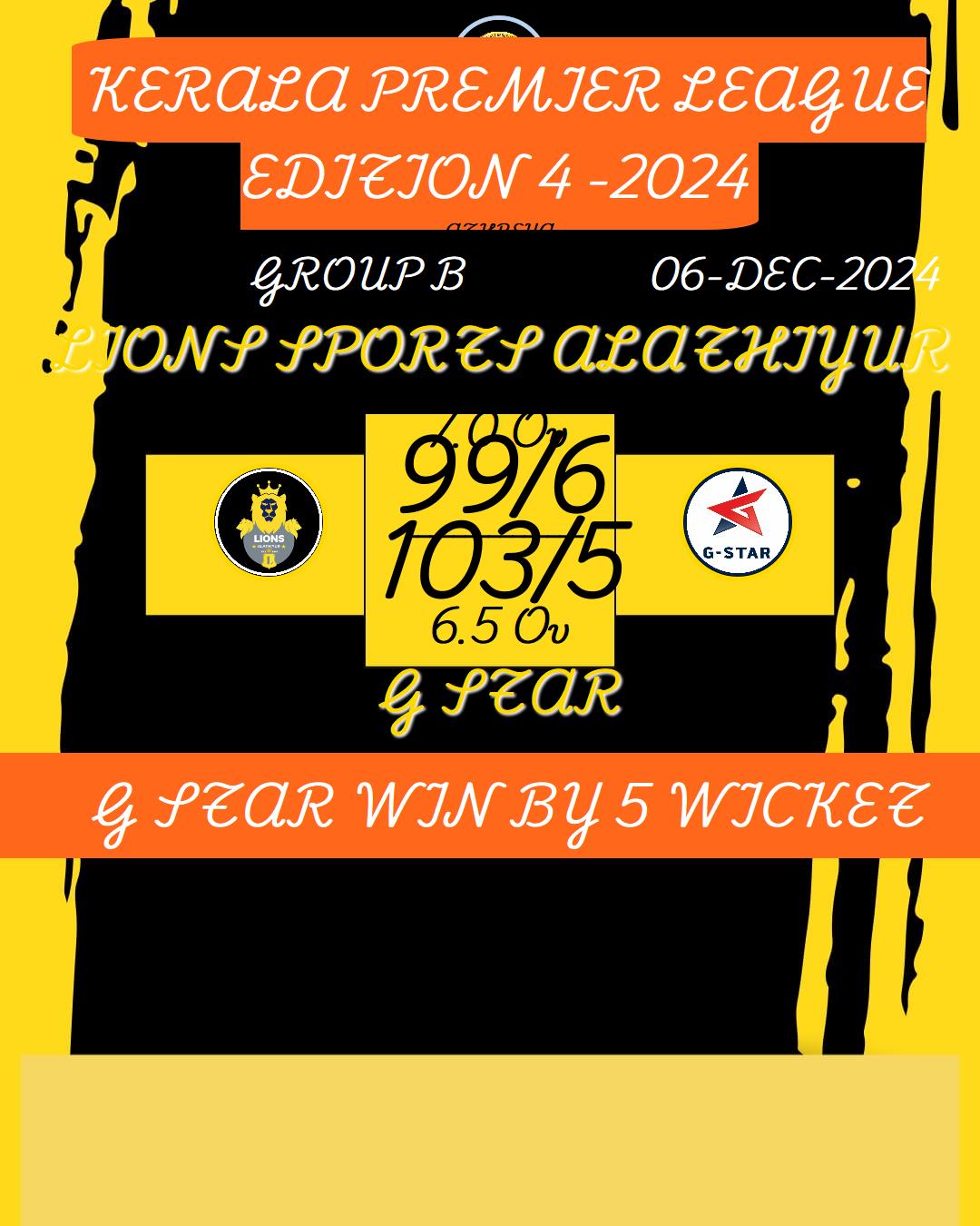 G STAR WIN BY 5 WICKET