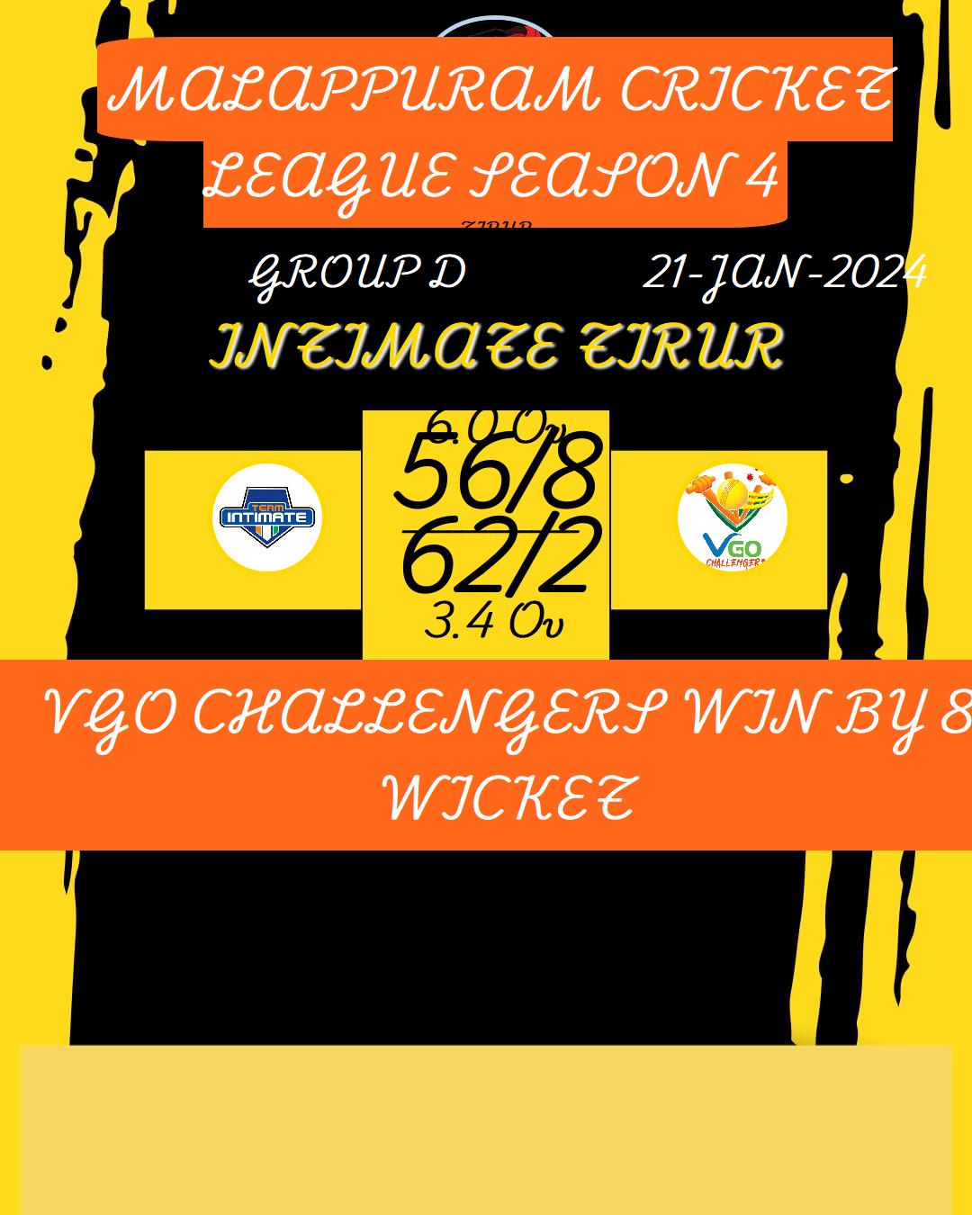 VGO CHALLENGERS WIN BY 8 WICKET