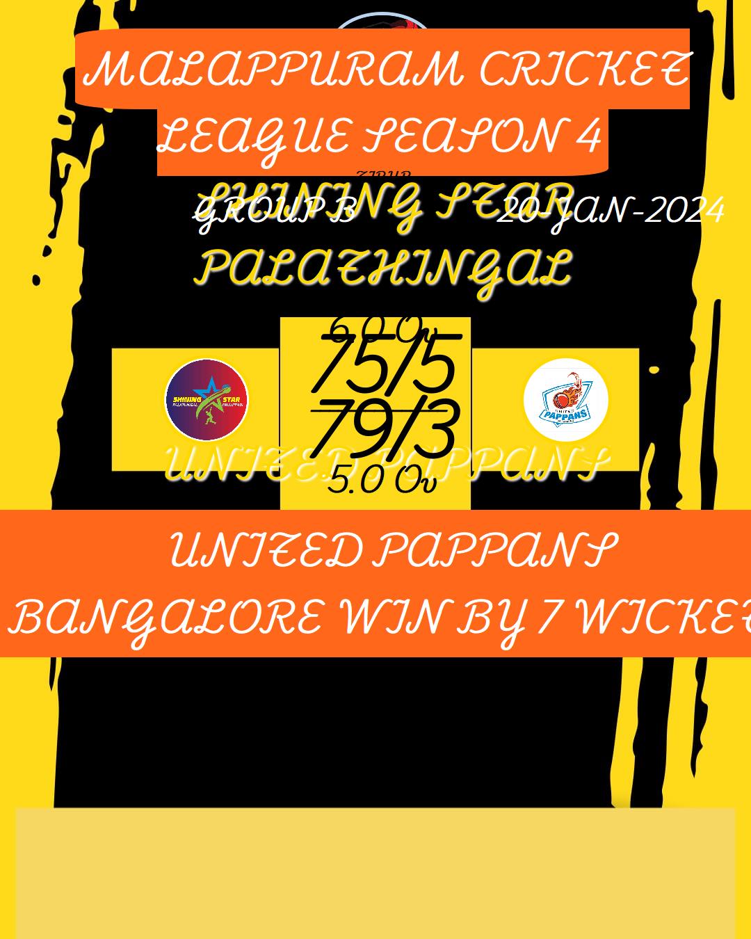 UNITED PAPPANS BANGALORE WIN BY 7 WICKET