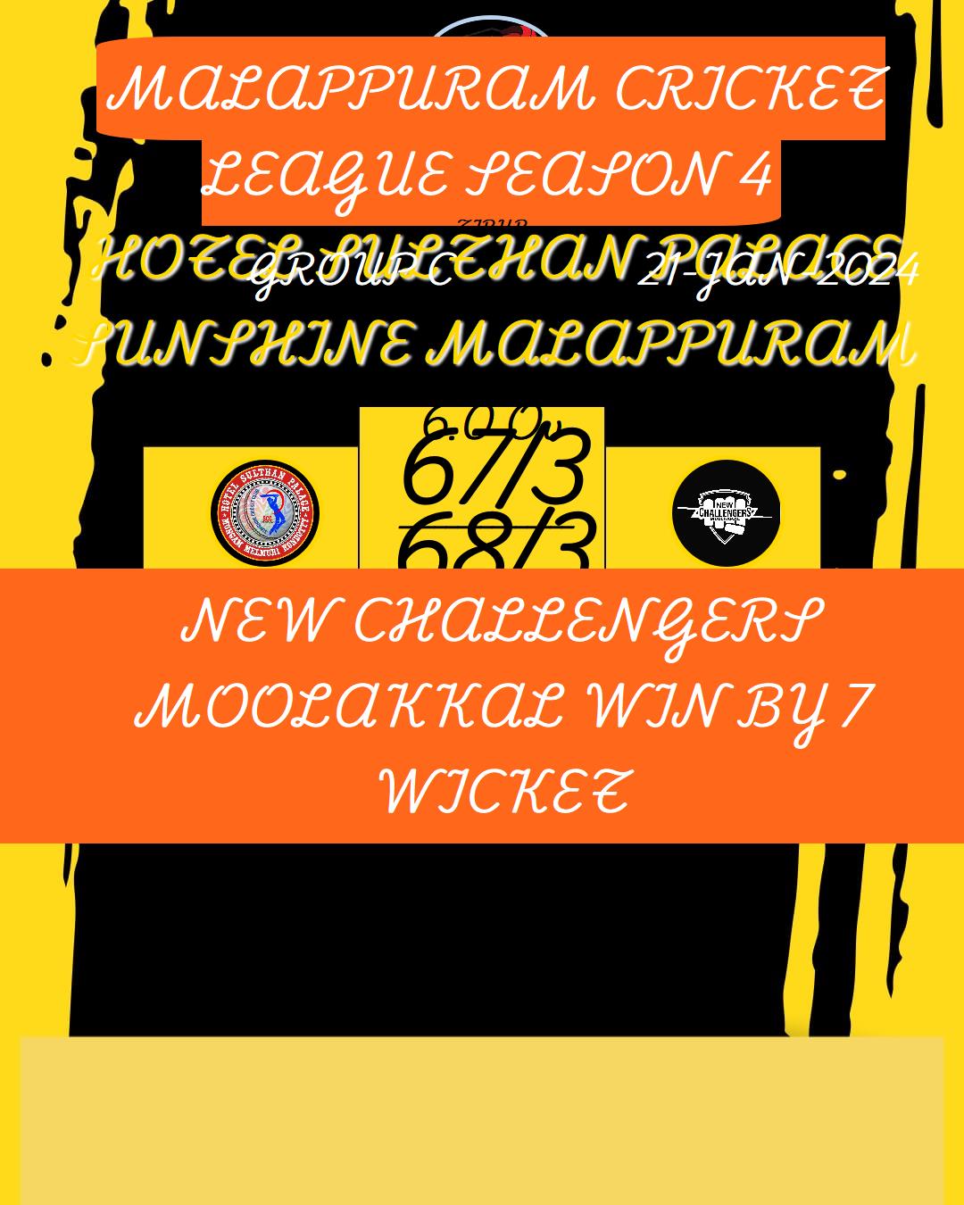 NEW CHALLENGERS MOOLAKKAL WIN BY 7 WICKET