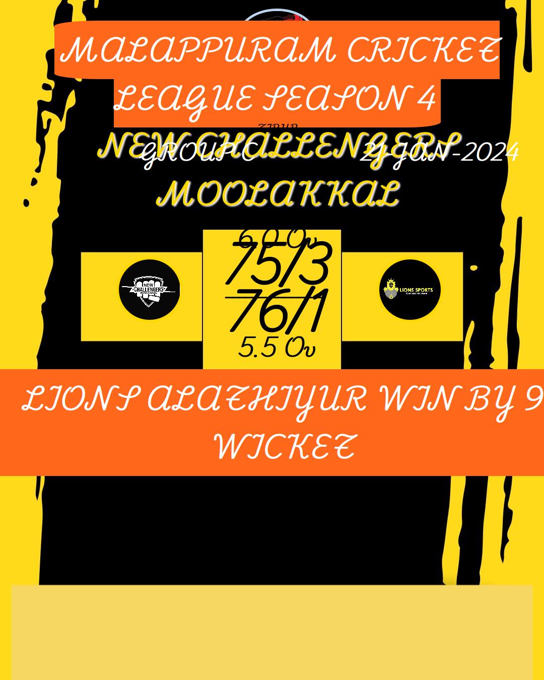 NEW CHALLENGERS MOOLAKKAL WIN BY 6 WICKET