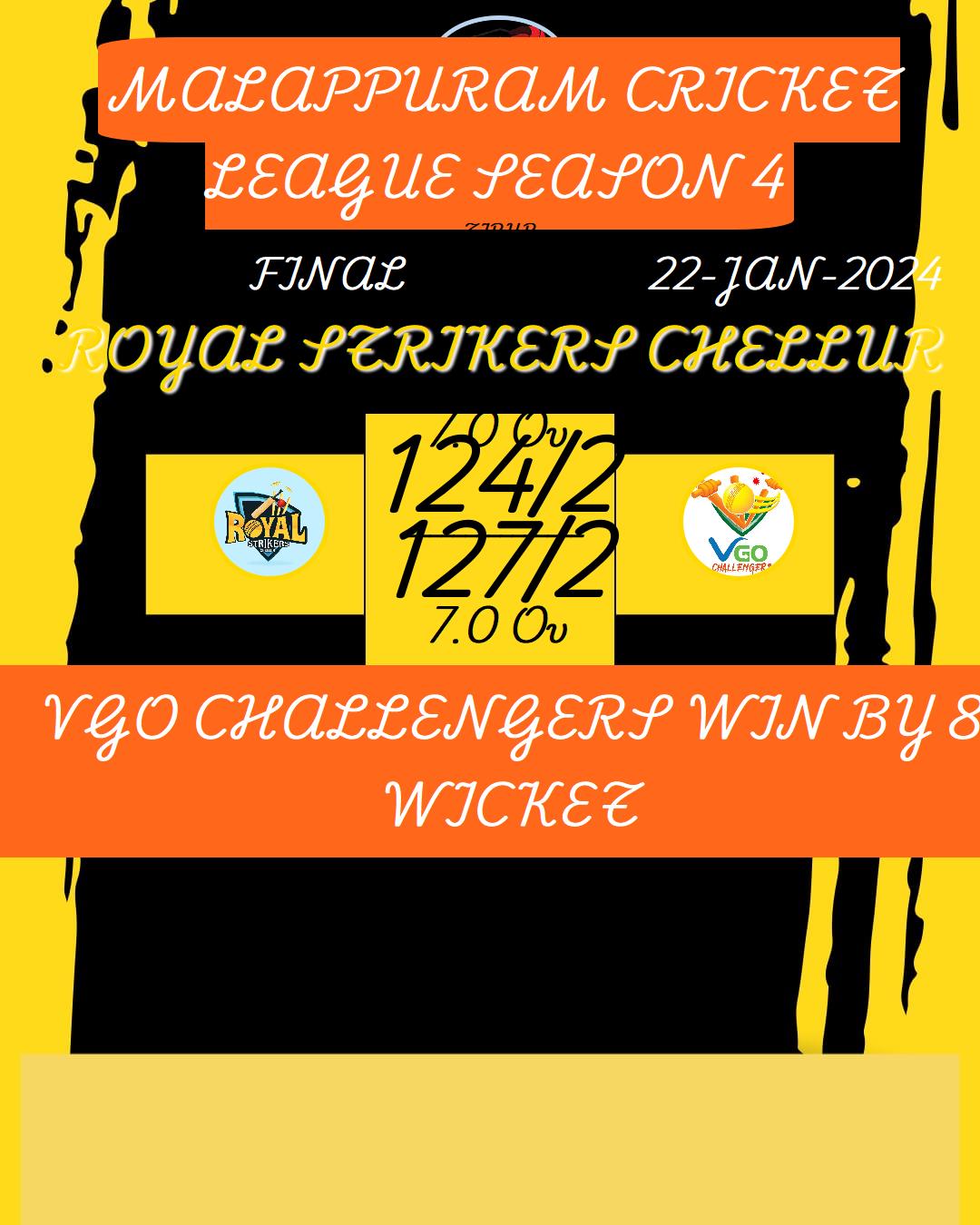 ROYAL STRIKERS CHELLUR WIN BY 8 RUNS