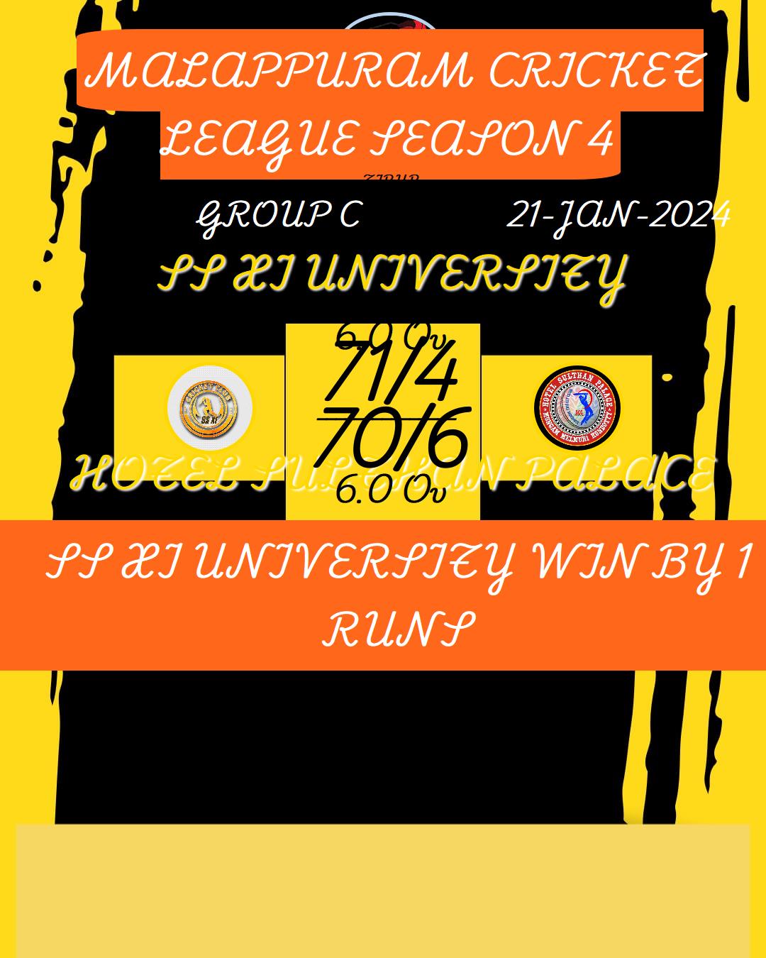 SS XI UNIVERSITY WIN BY 1 RUNS