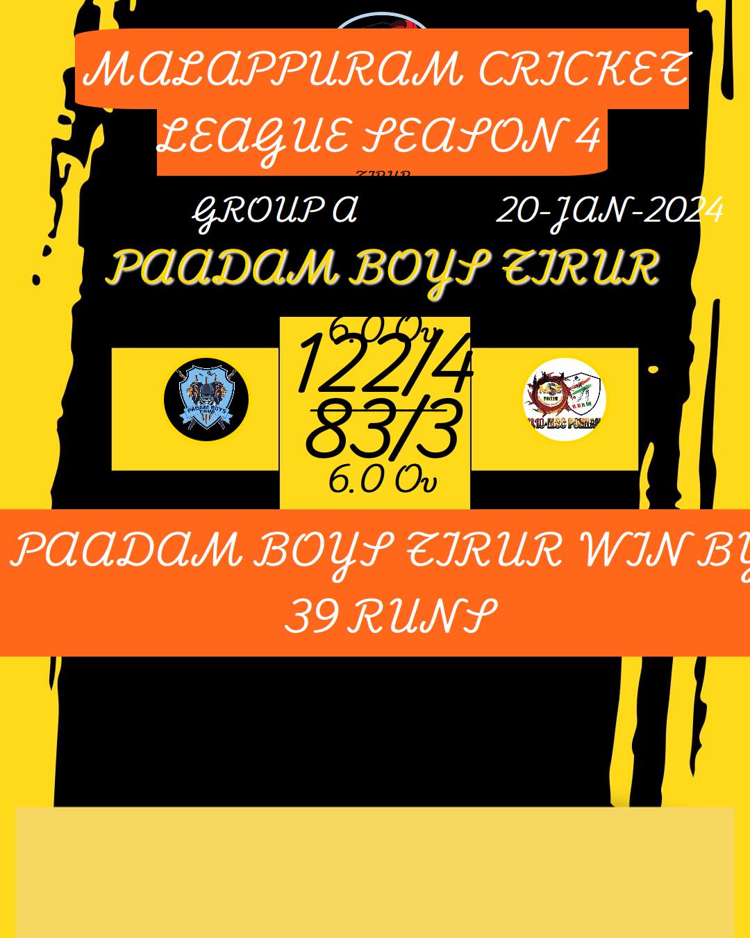 PAADAM BOYS TIRUR WIN BY 39 RUNS