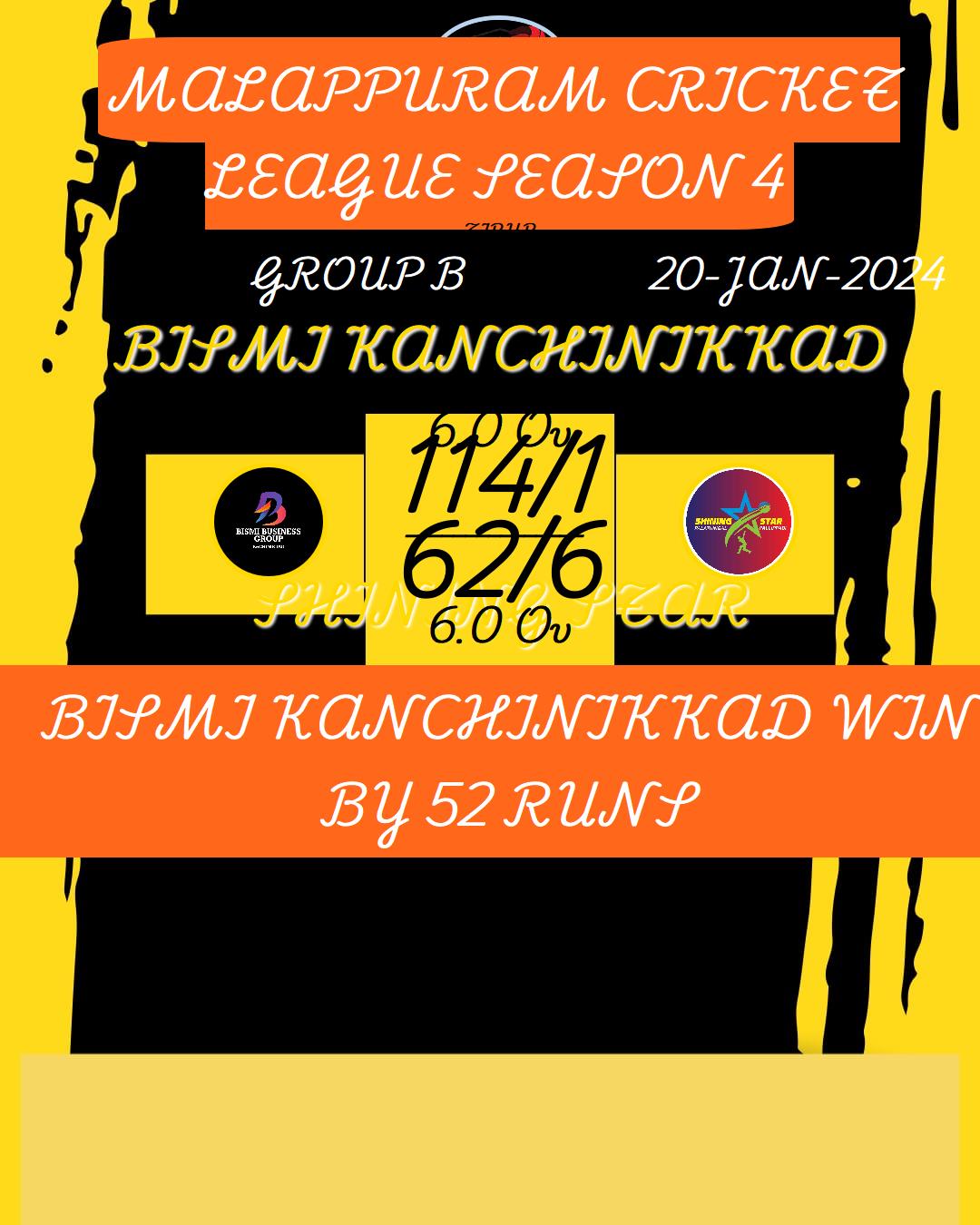 BISMI KANCHINIKKAD WIN BY 52 RUNS