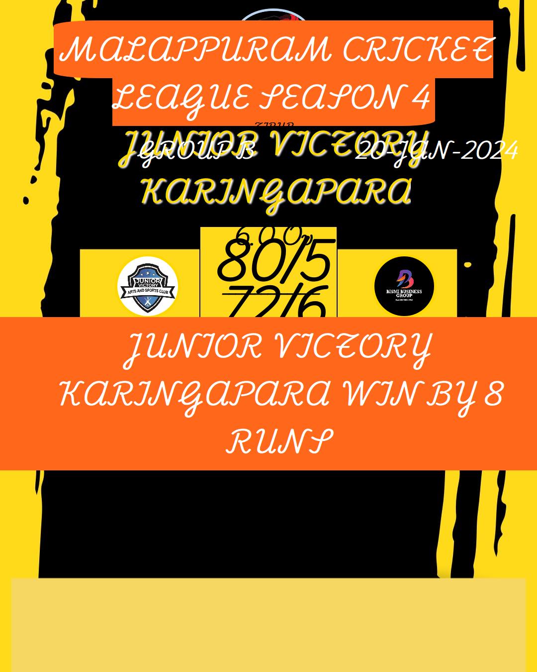 JUNIOR VICTORY KARINGAPARA WIN BY 7 WICKET