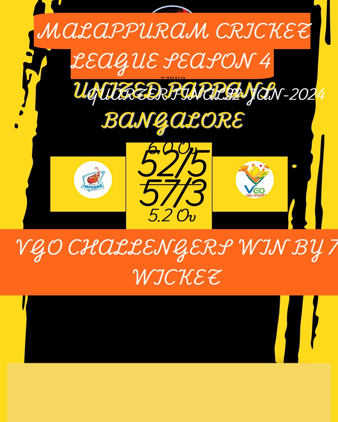 VGO CHALLENGERS WIN BY 7 WICKET