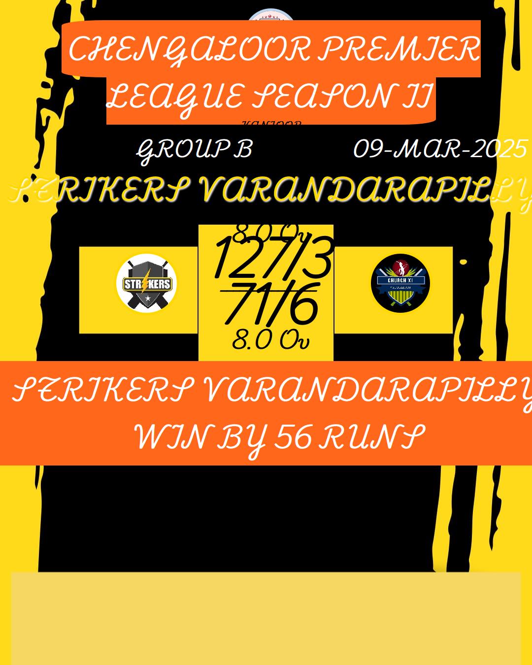 STRIKERS VARANDARAPILLY WIN BY 56 RUNS