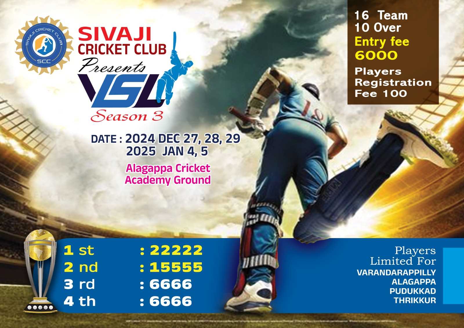 | HEROES KALLUR | 3 | 2 | 1 | 0 | 0 | 2.878 | 4 | 327/24.83 | 283/27.50 |