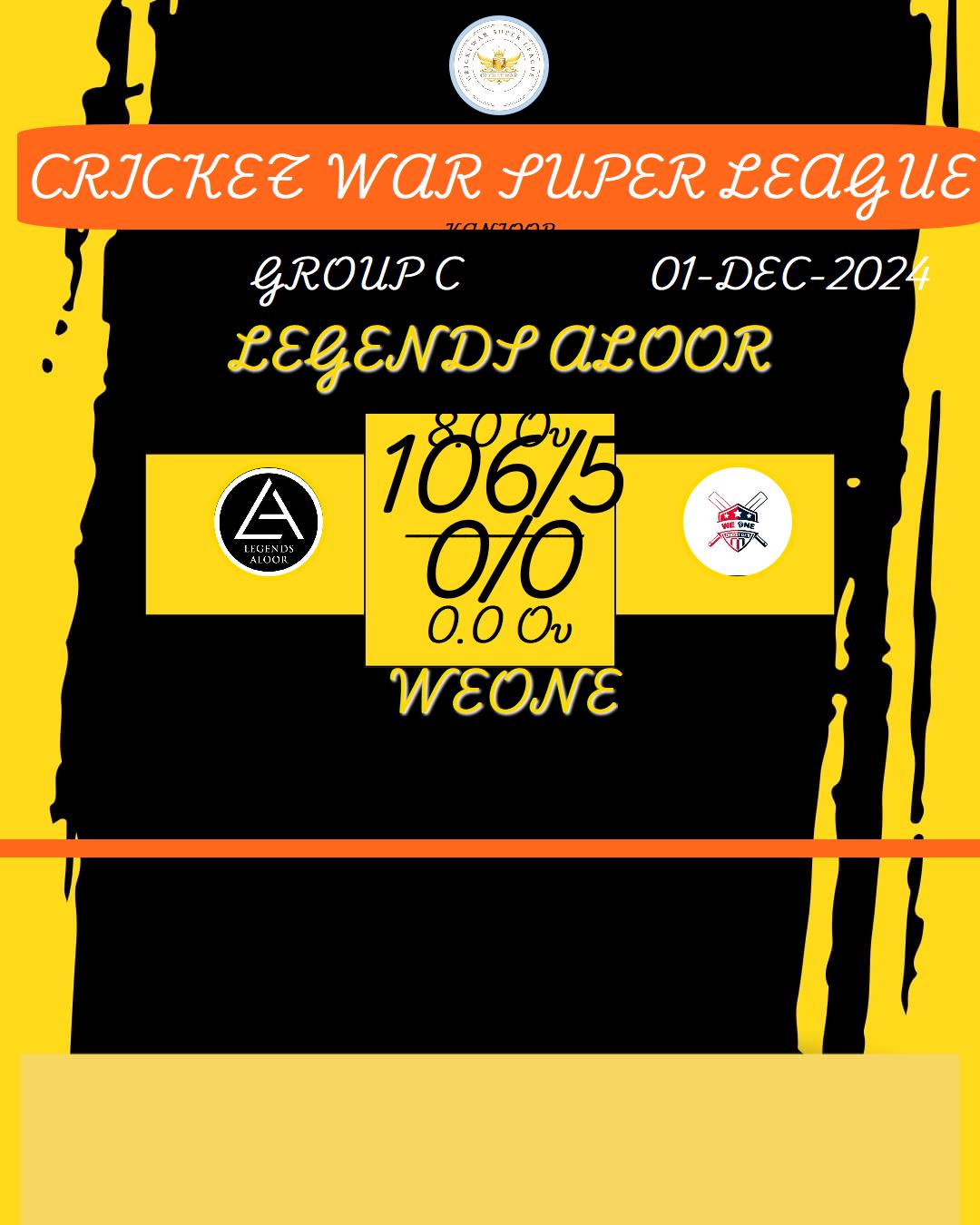 LEGENDS ALOOR (CRICKET WAR SUPER LEAGUE) MATCHES