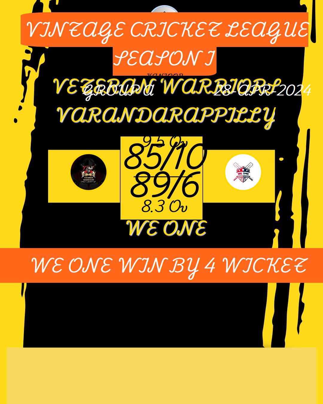 WE ONE WIN BY 4 WICKET