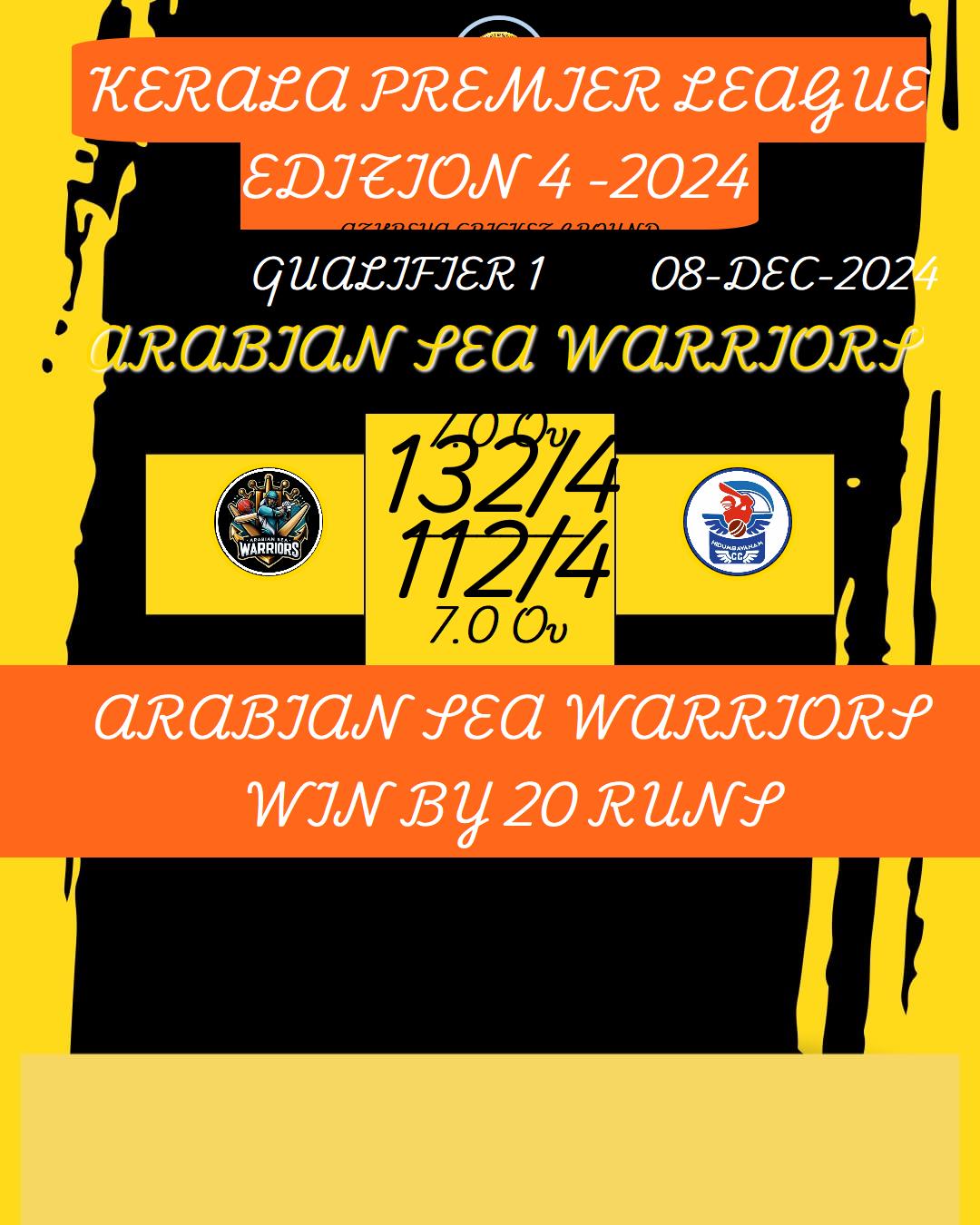 ARABIAN SEA WARRIORS WIN BY 20 RUNS
