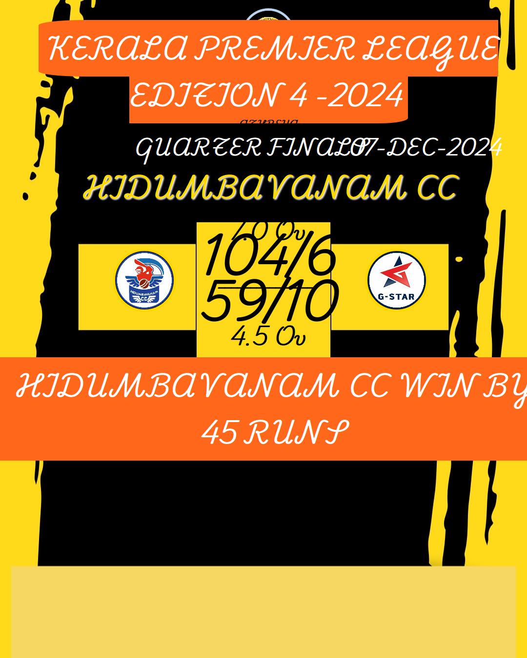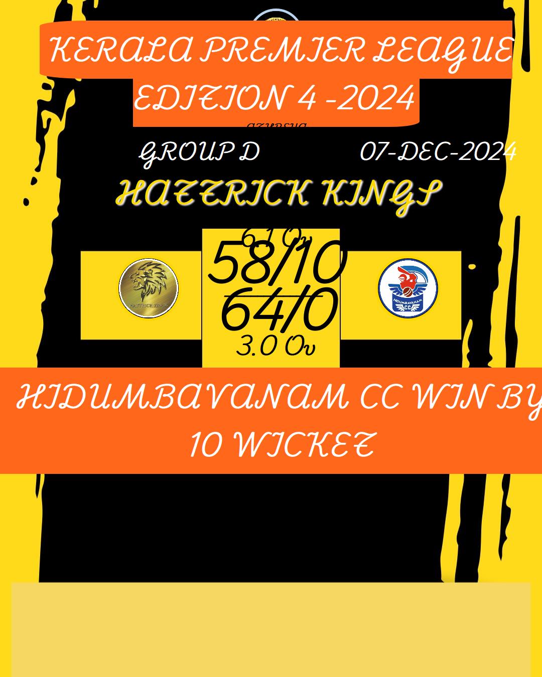 HIDUMBAVANAM CC (KERALA PREMIER LEAGUE EDITION 4 -2024) MATCHES