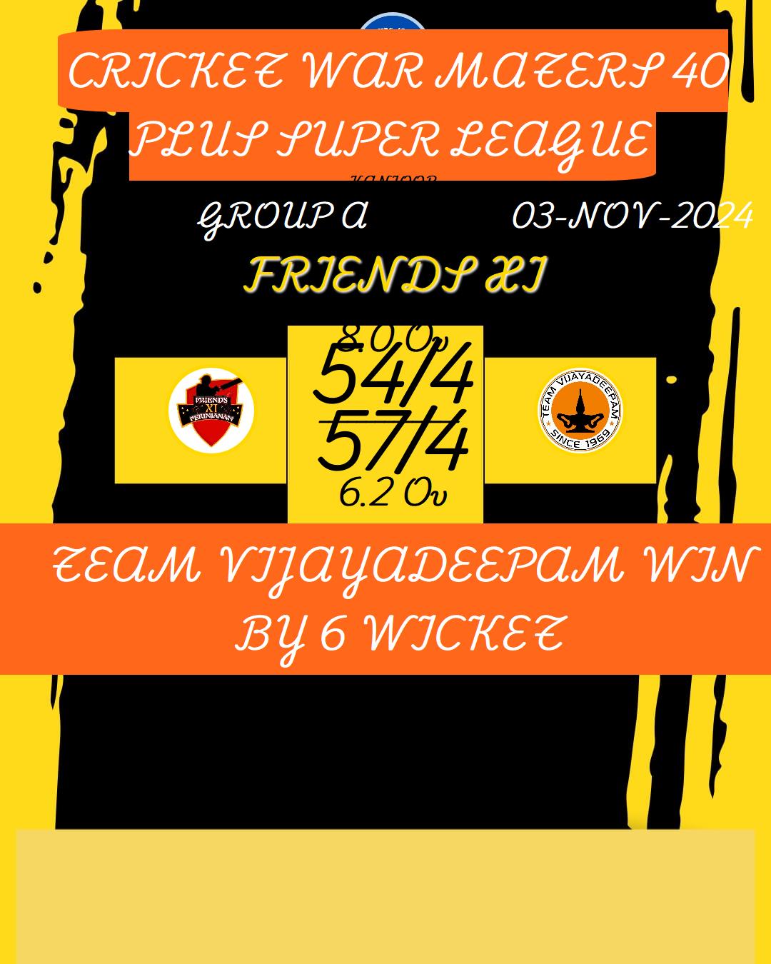 TEAM VIJAYADEEPAM WIN BY 6 WICKET