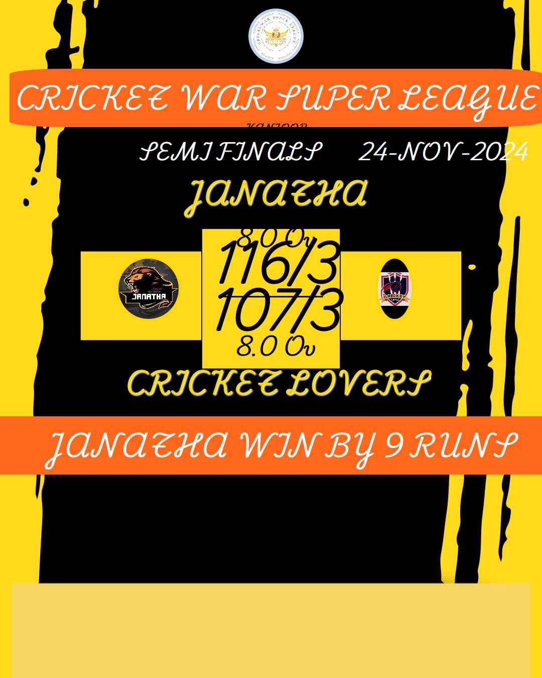JANATHA (CRICKET WAR SUPER LEAGUE) MATCHES