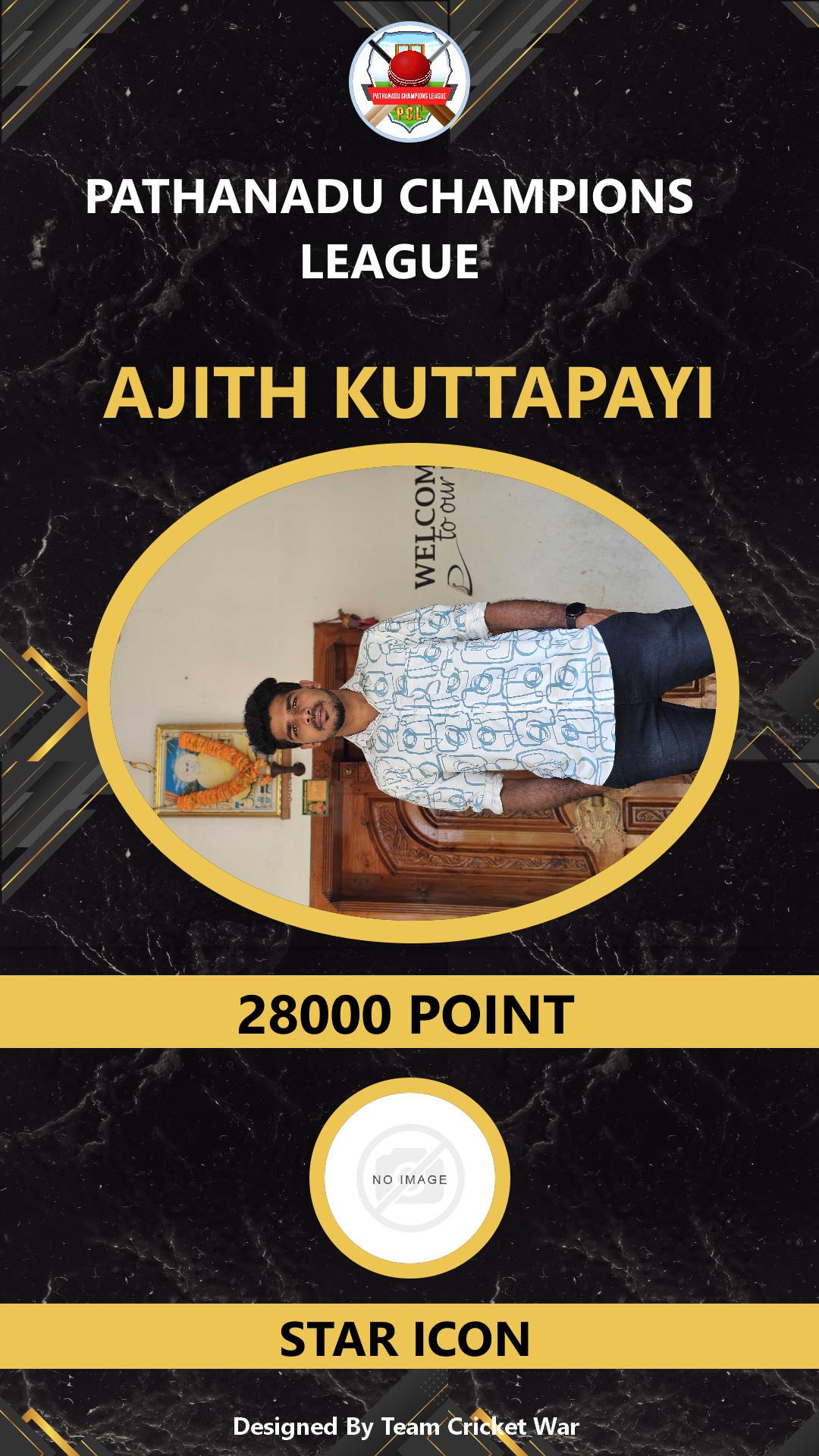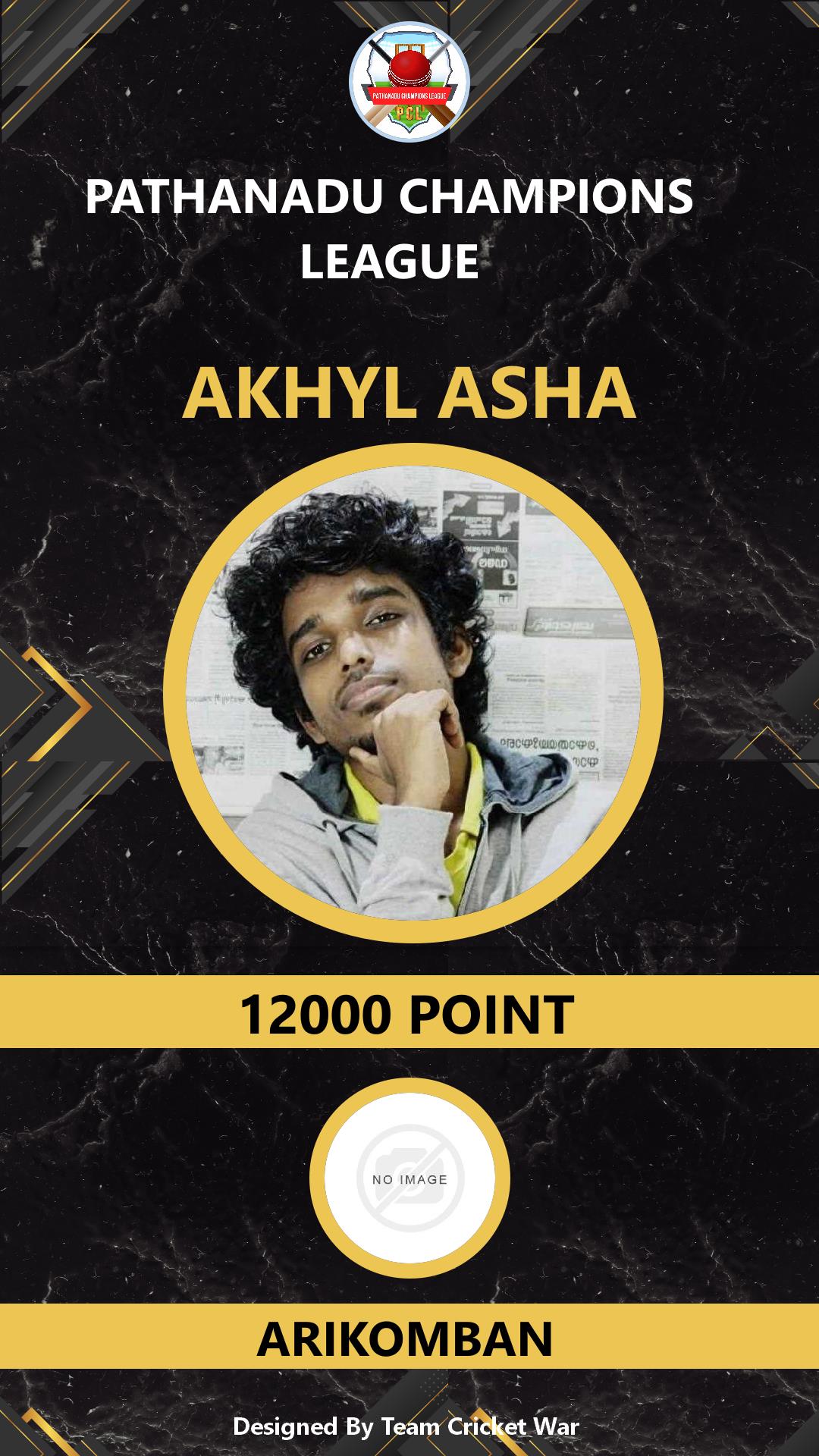 ALLROUNDER, AGE : 29 PATHANADU Bid Amount : 12000 Team : SUPERNOVA Download ID Card |