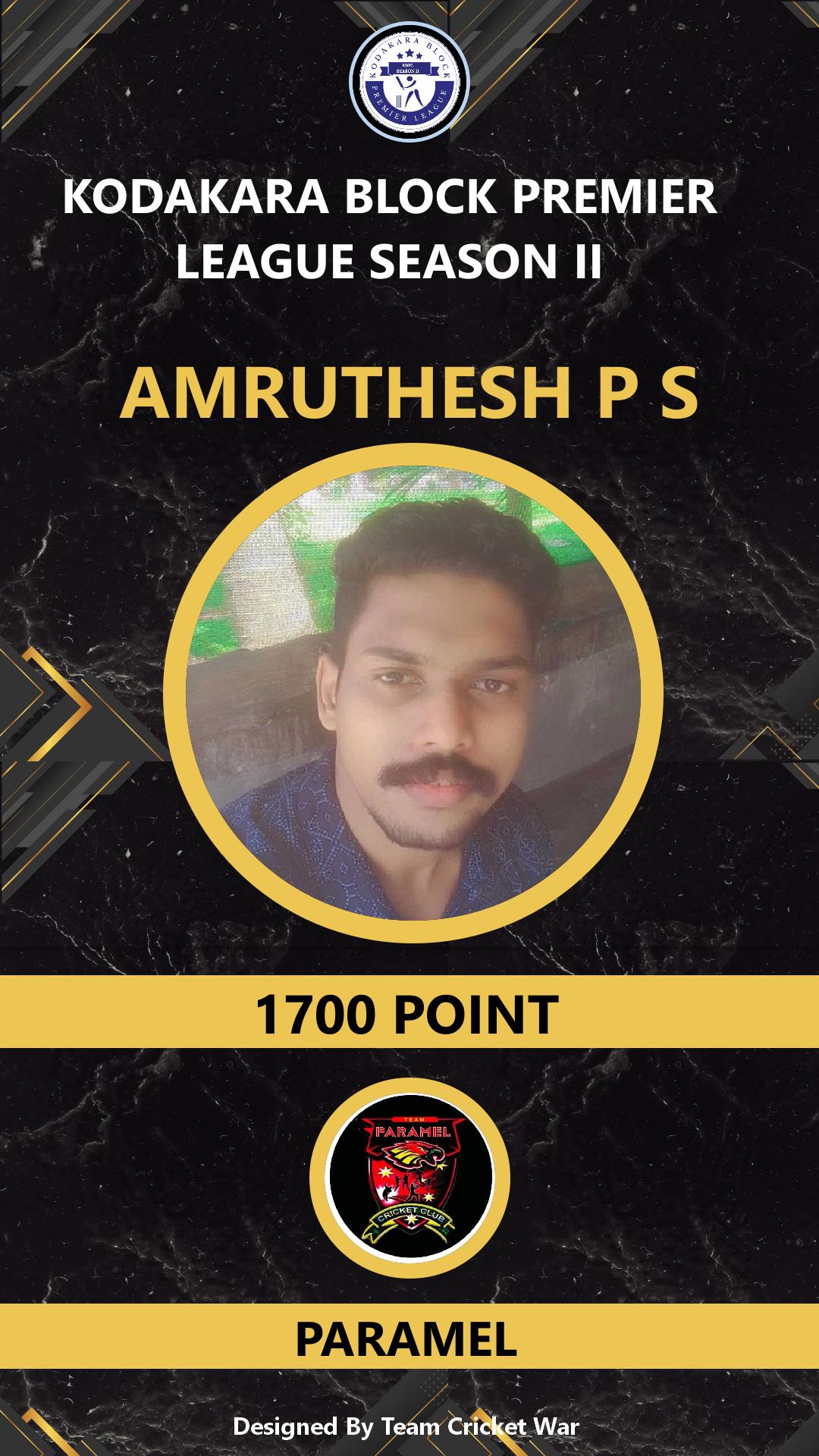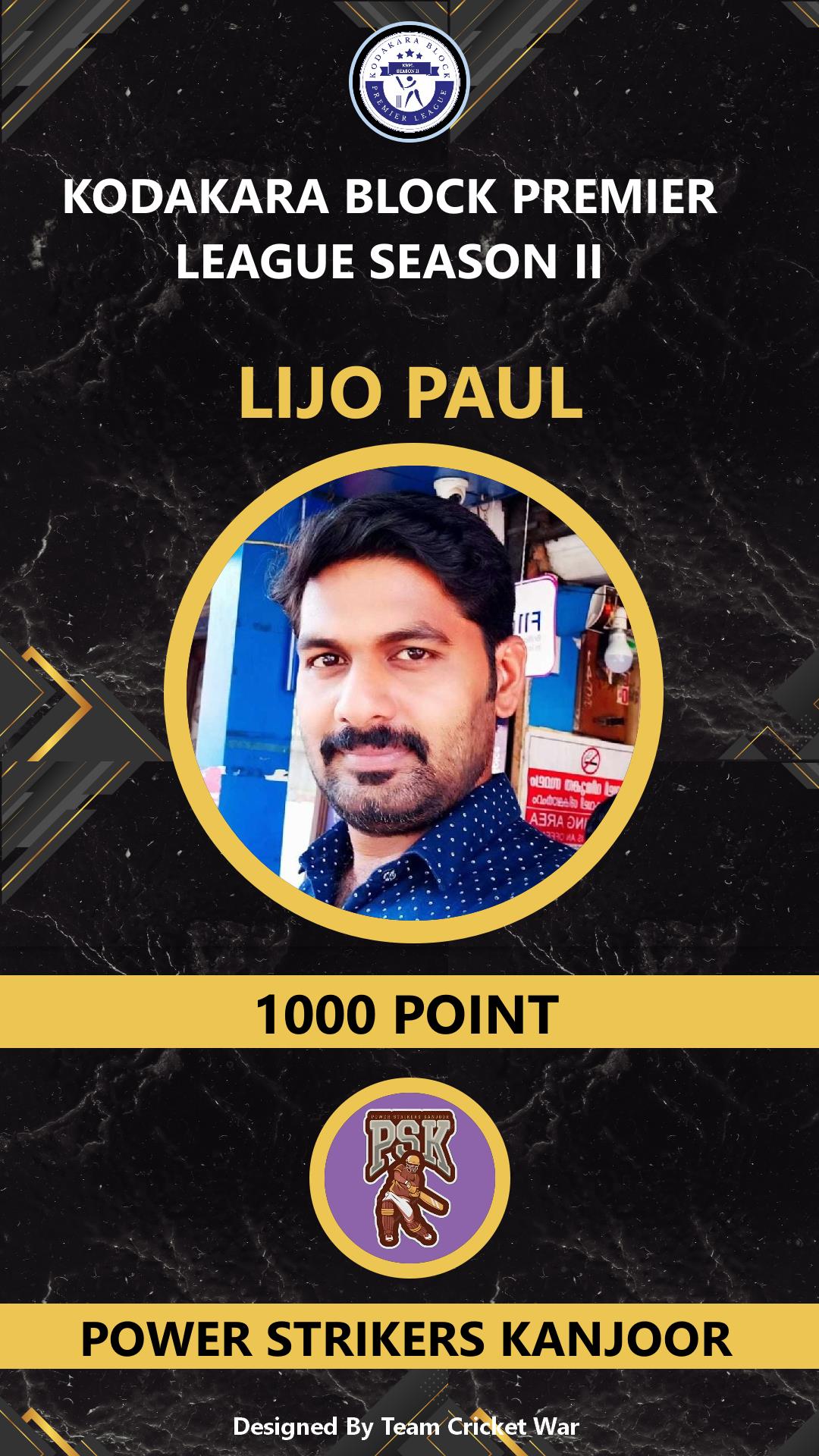 ALLROUNDER, AGE : 34 KODAKARA Bid Amount : 1000 Team : POWER STRIKERS KANJOOR Download ID Card |