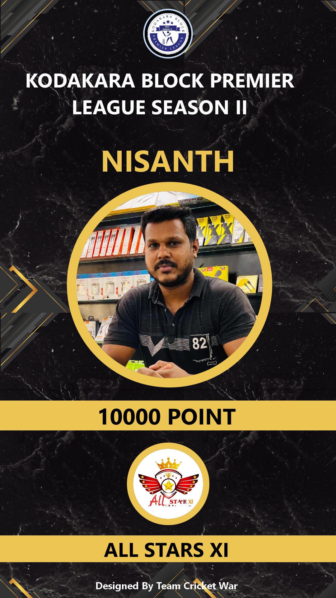 BATTING ALLROUNDER, AGE : 31 NANDIPULAM Bid Amount : 1000 Team : ALL STARS XI Download ID Card VIEW PROFILE |