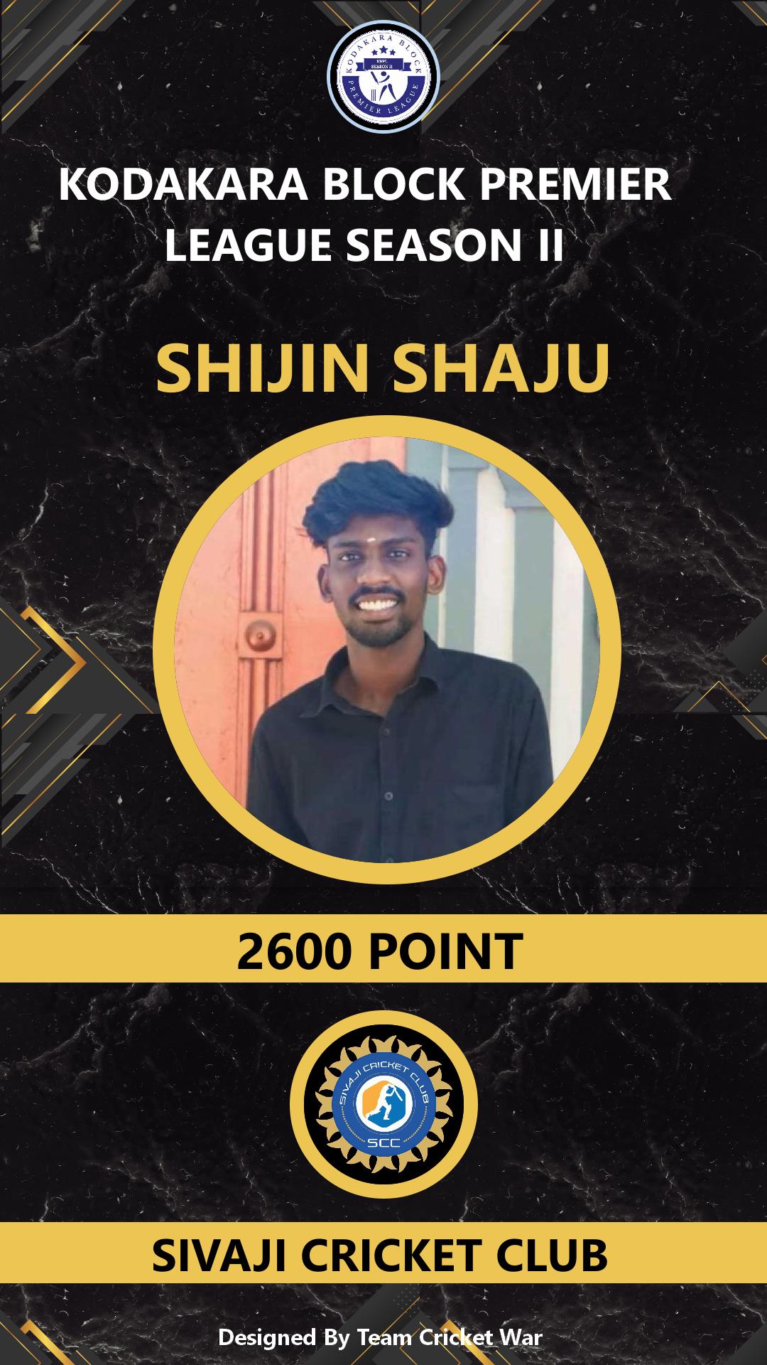 BOWLING ALLROUNDER, AGE : 26 VARANDHARAPPILLY Bid Amount : 1900 Team : SIVAJI CRICKET CLUB Download ID Card VIEW PROFILE |