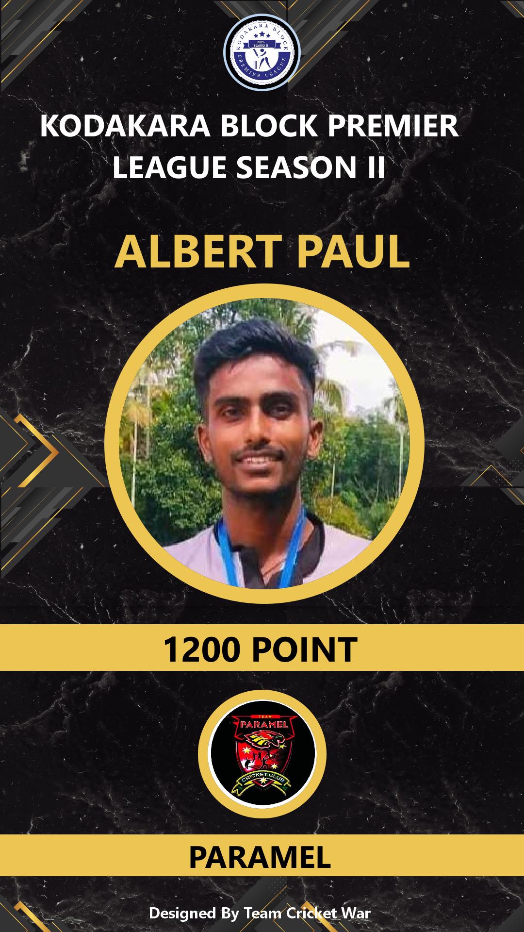 BATSMAN, AGE : 24 KALAVARAKUNN Bid Amount : 1100 Team : SIVAJI CRICKET CLUB Download ID Card VIEW PROFILE |