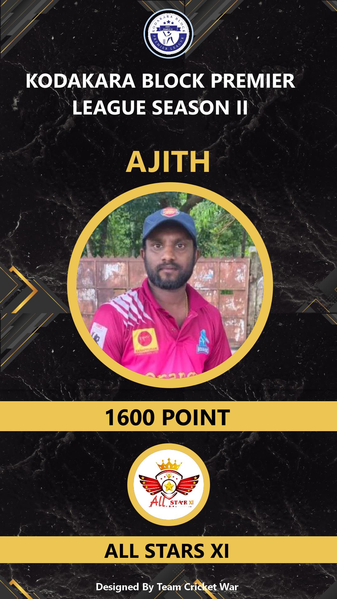 BOWLER, AGE : 30 VARAKKARA Bid Amount : 1600 Team : ALL STARS XI Download ID Card VIEW PROFILE |