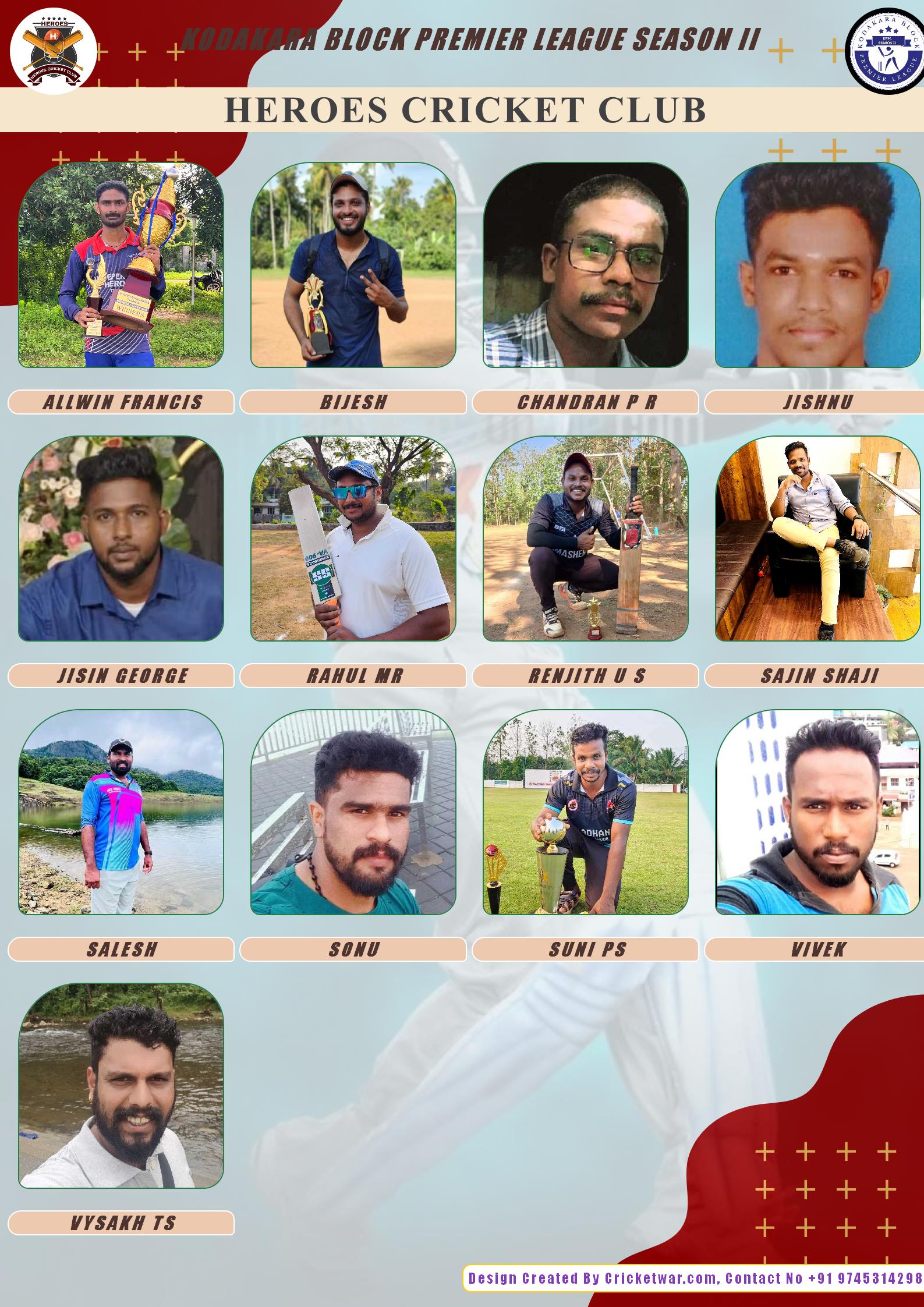 ALLROUNDER, AGE : 36 TRIKKUR Bid Amount : 5000 Team : HEROES CRICKET CLUB Download ID Card VIEW PROFILE |